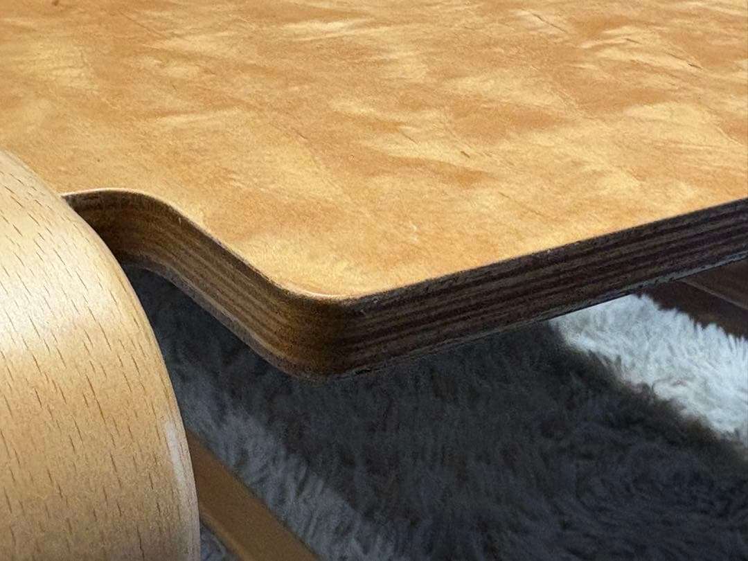 滑らかなカーブを描く脚部と、木の温もりを感じる天板の質感が魅力。