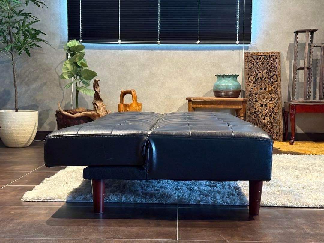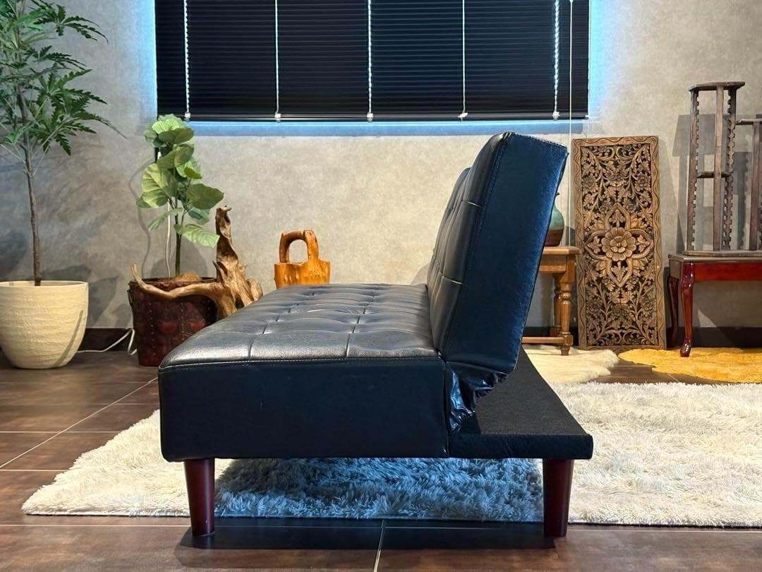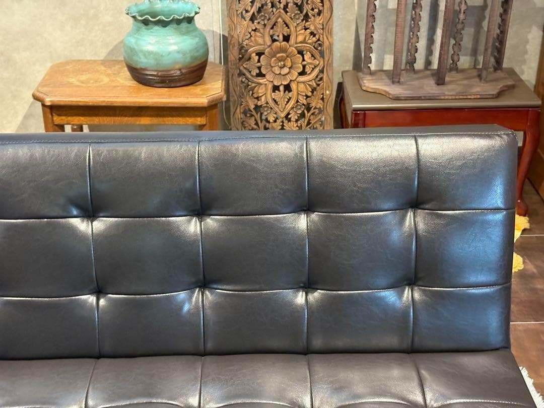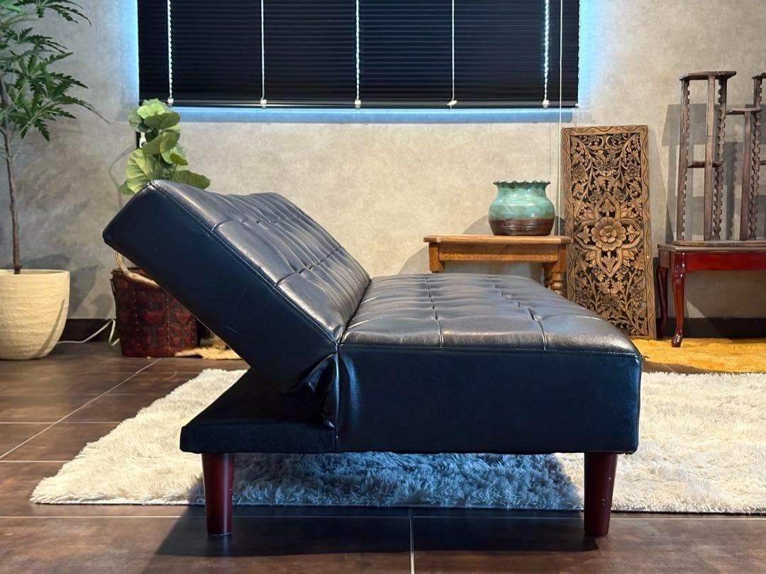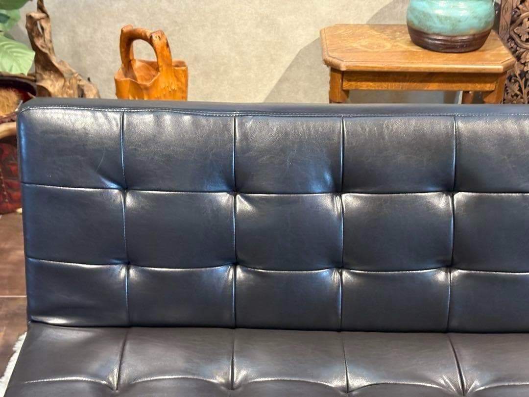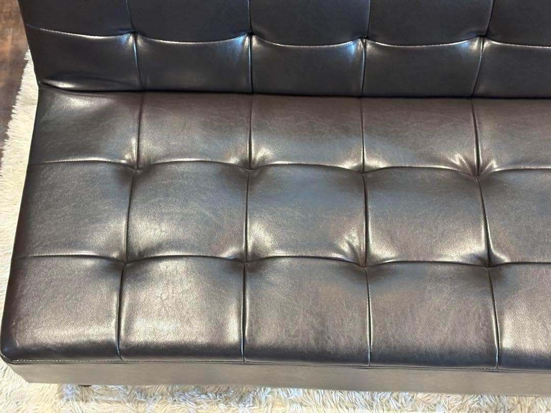 希少 3Pソファ ソファベッド ブラックレザー ボタンダウン ヴィンテージ IH
