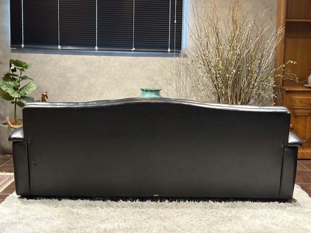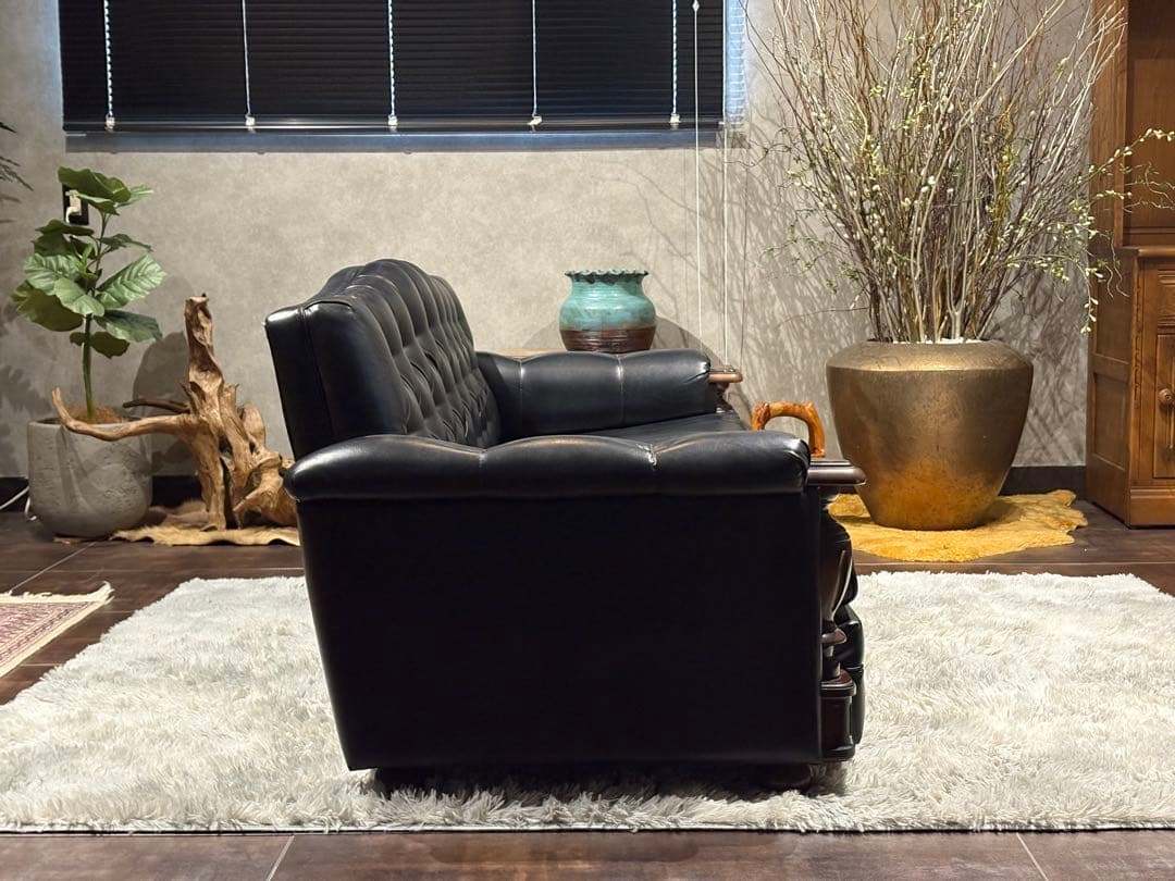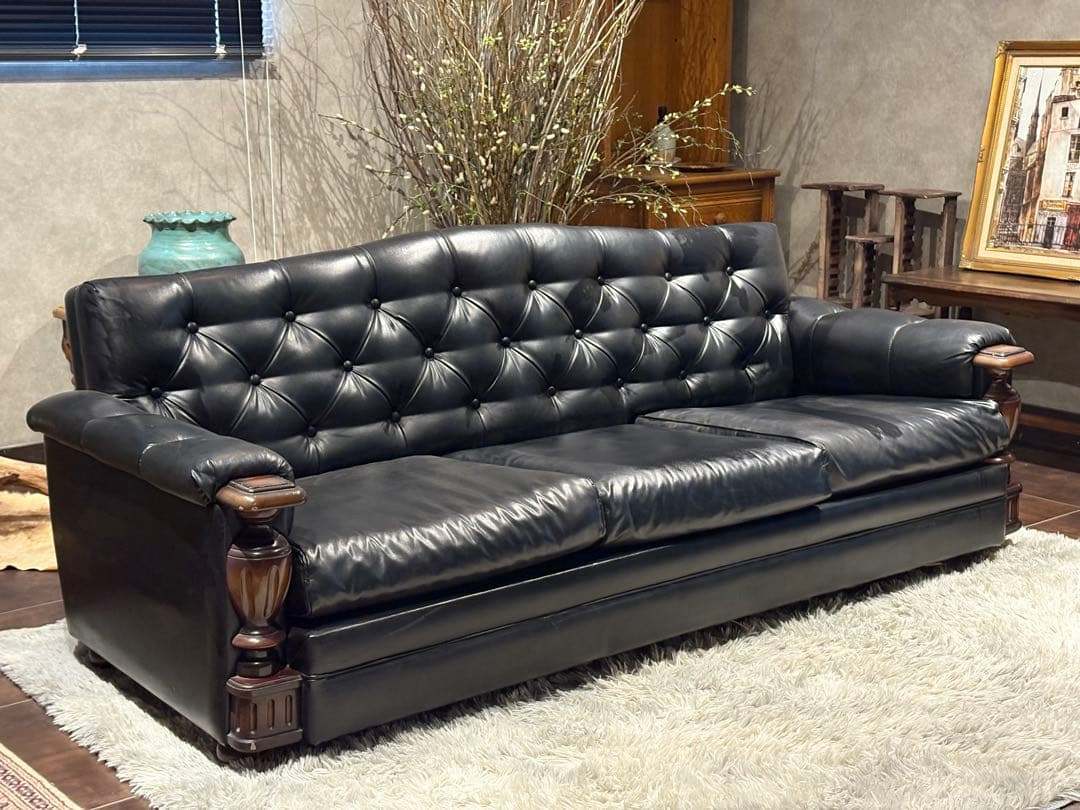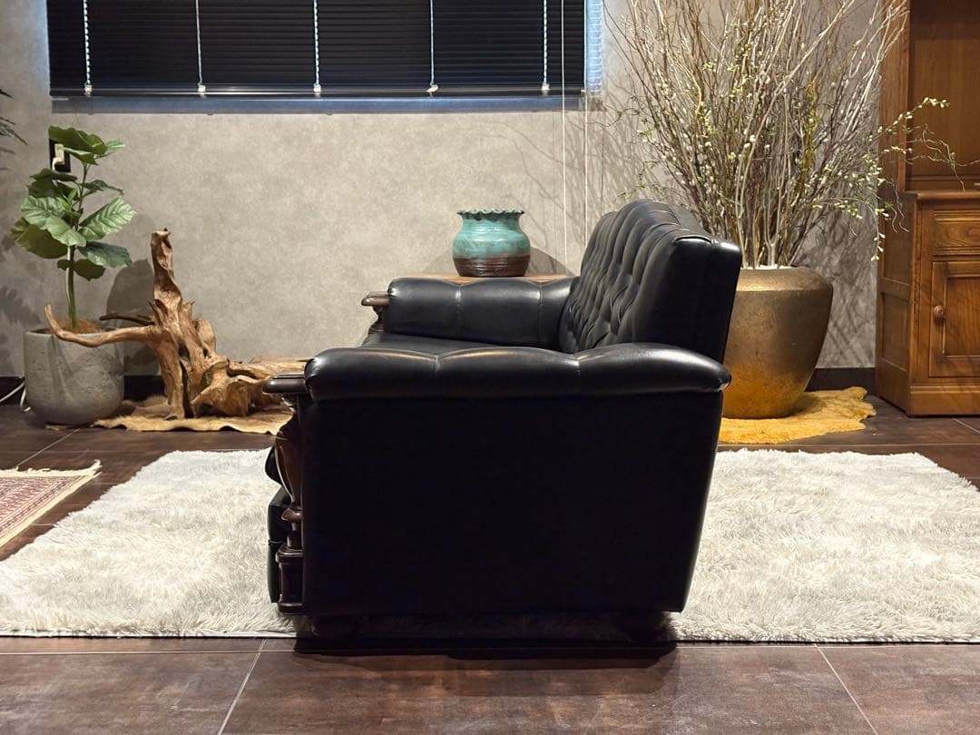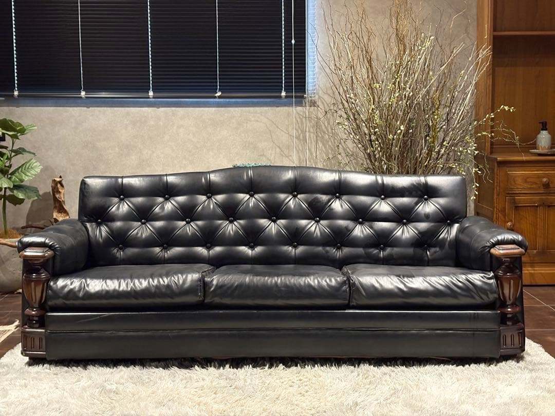 karimoku カリモク 本革ソファ 3人掛けソファ 3Pソファ レザーソファ 高級家具 クラシックソファ アンティーク家具 ビンテージ家具 応接ソファ ブラックレザー 重厚家具 モダンインテリア レトロモダン 木製フレームソファ インテリア家具 リビングソファ デザインソファ 高級感ソファ カリモク家具 本革