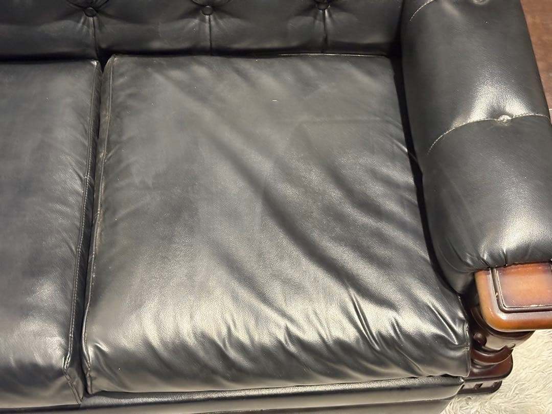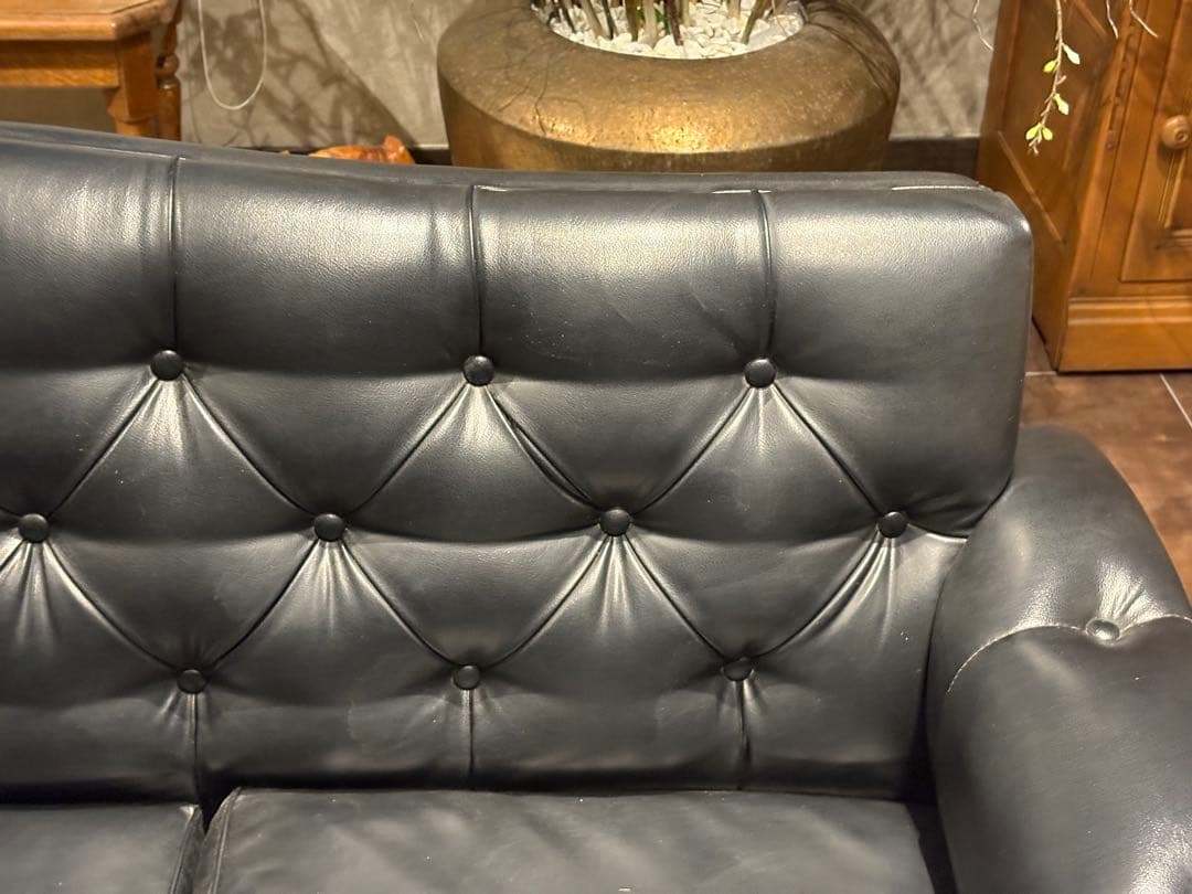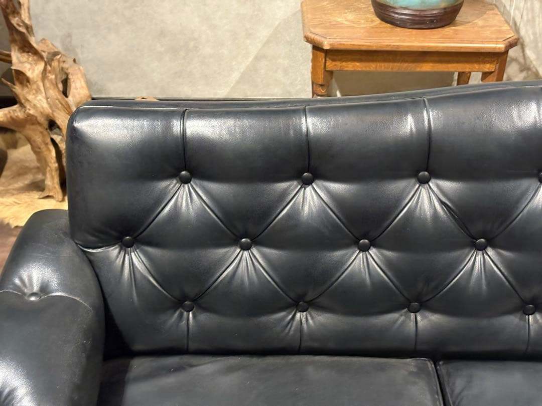 上質な本革を使用した重厚感のあるデザインで、背もたれには美しいボタン留めを採用。