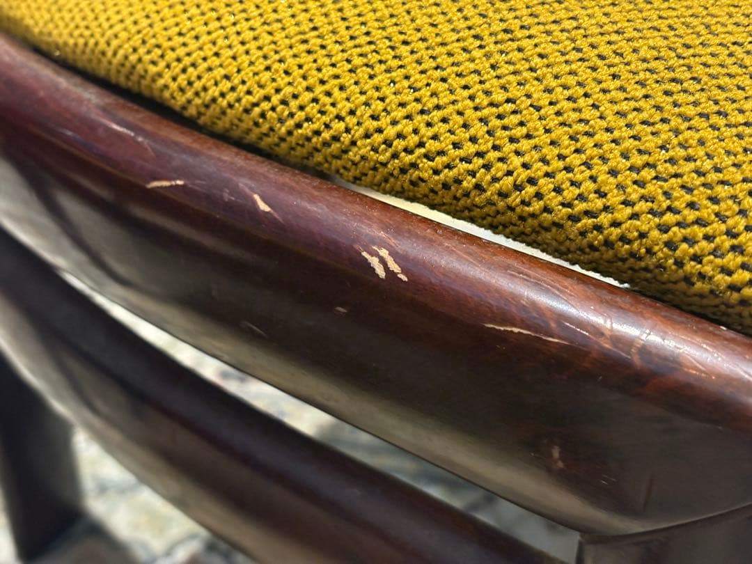 座面は張り替え済みのリメイク仕様で、ヴィンテージ家具ならではの雰囲気に、程よく現代的な快適さをプラスしています。