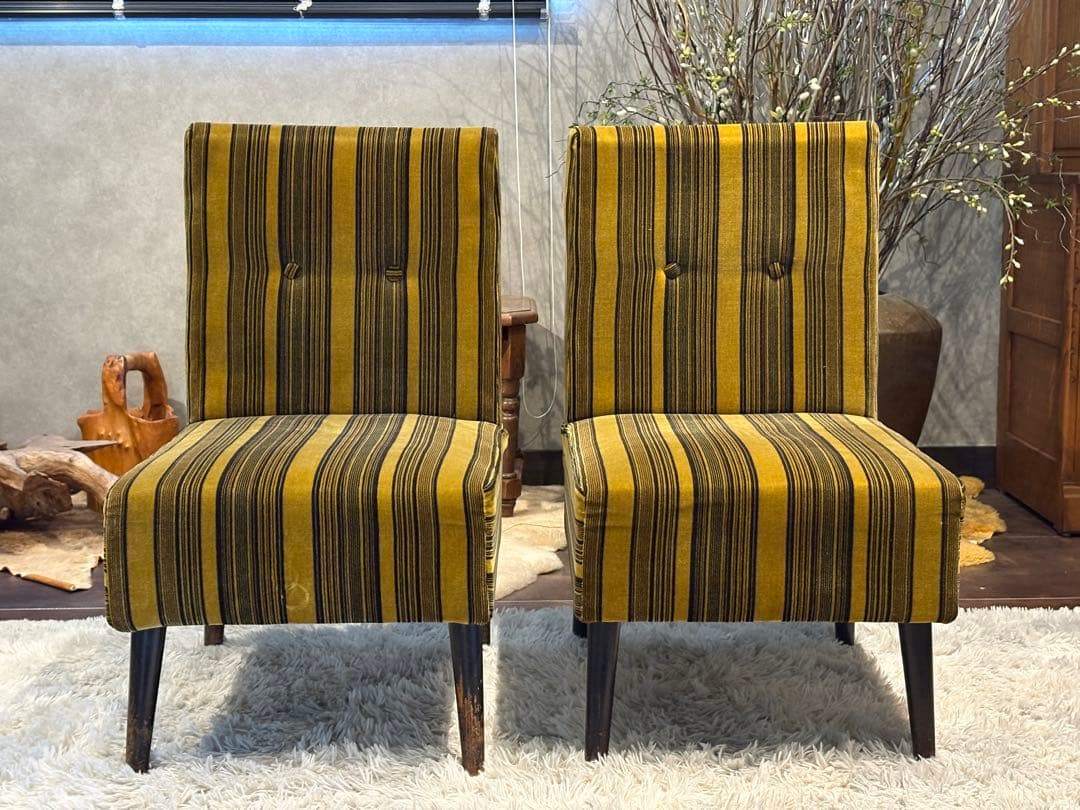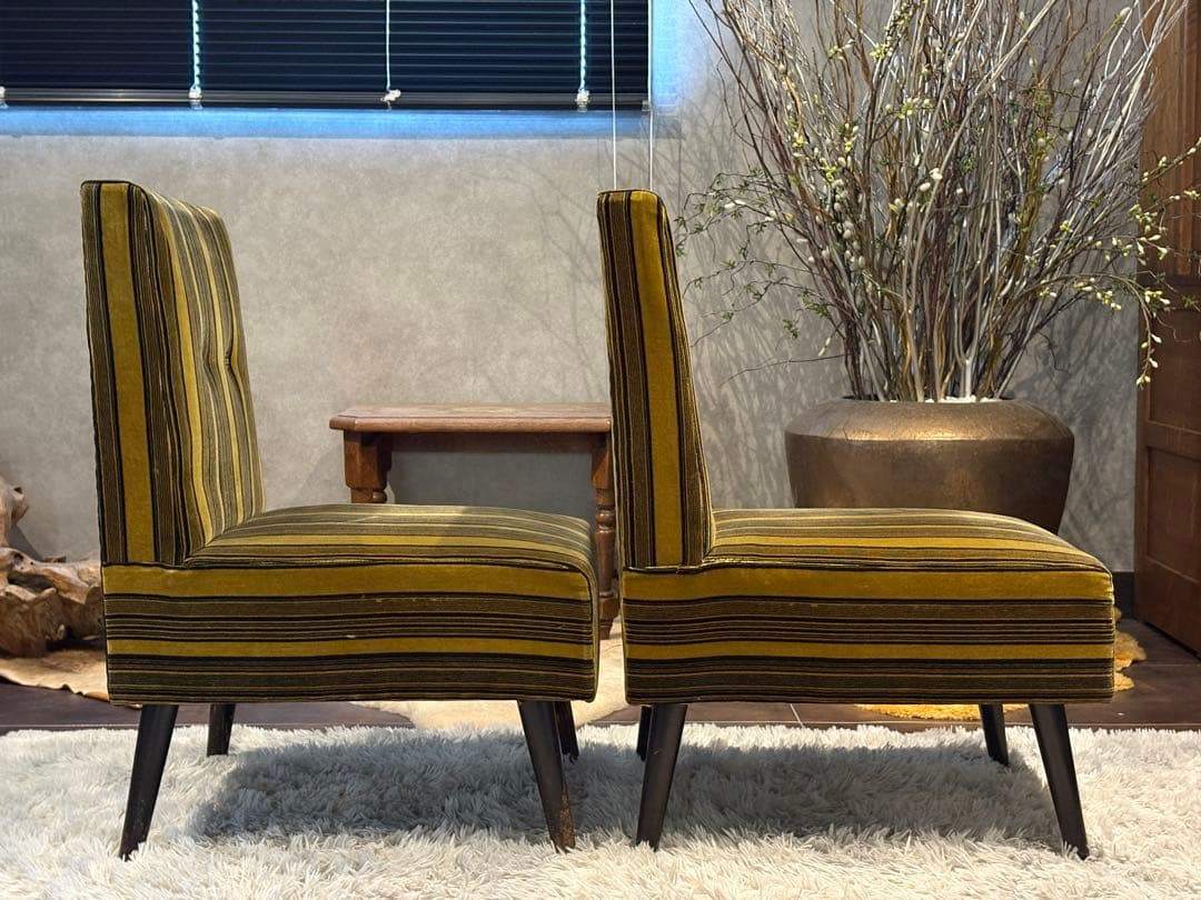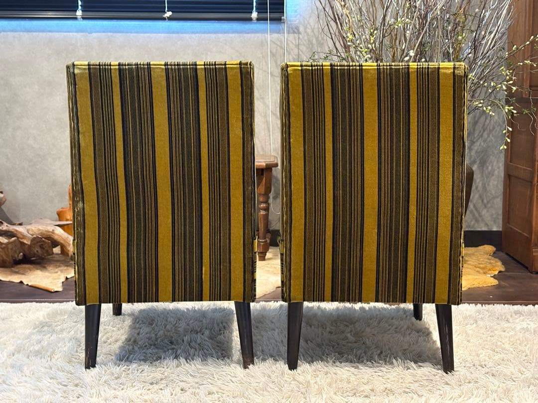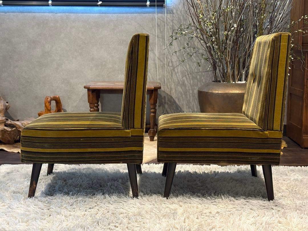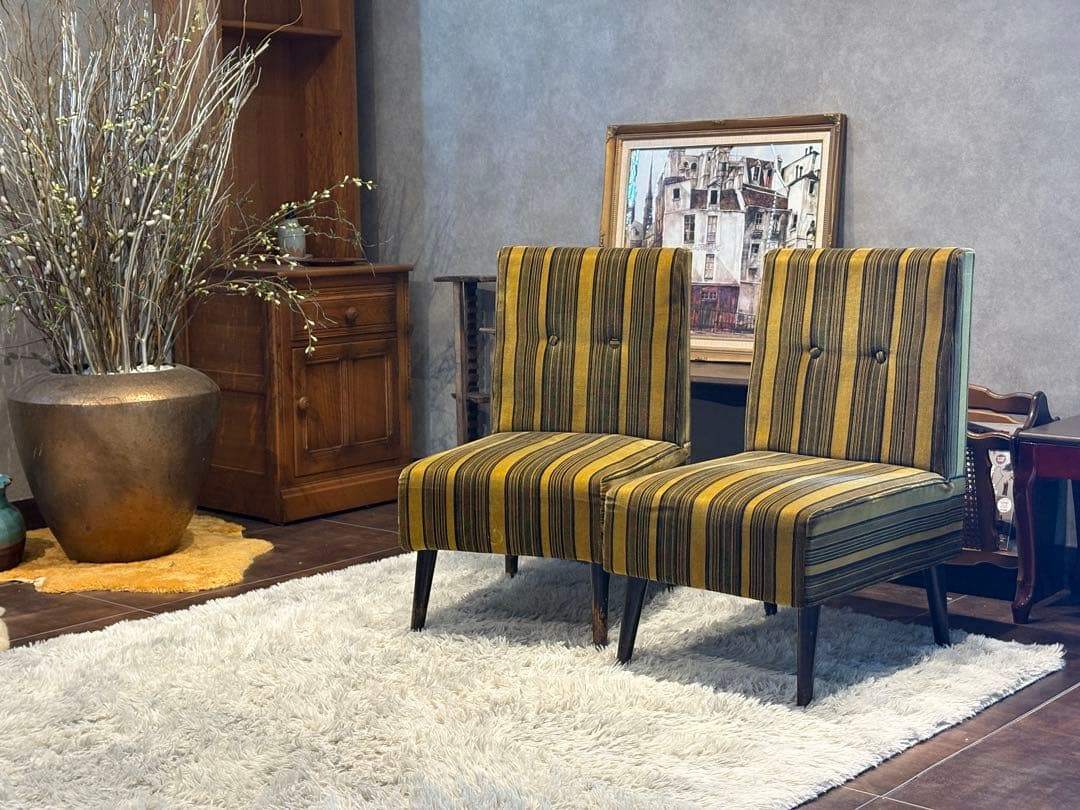 ストライプチェア シングルソファ ファブリックチェア レトロチェア アンティーク ヴィンテージ ビンテージ クラシック家具 デザインチェア 椅子 リビングチェア ラウンジチェア インテリア家具 レトロモダン 店舗什器
