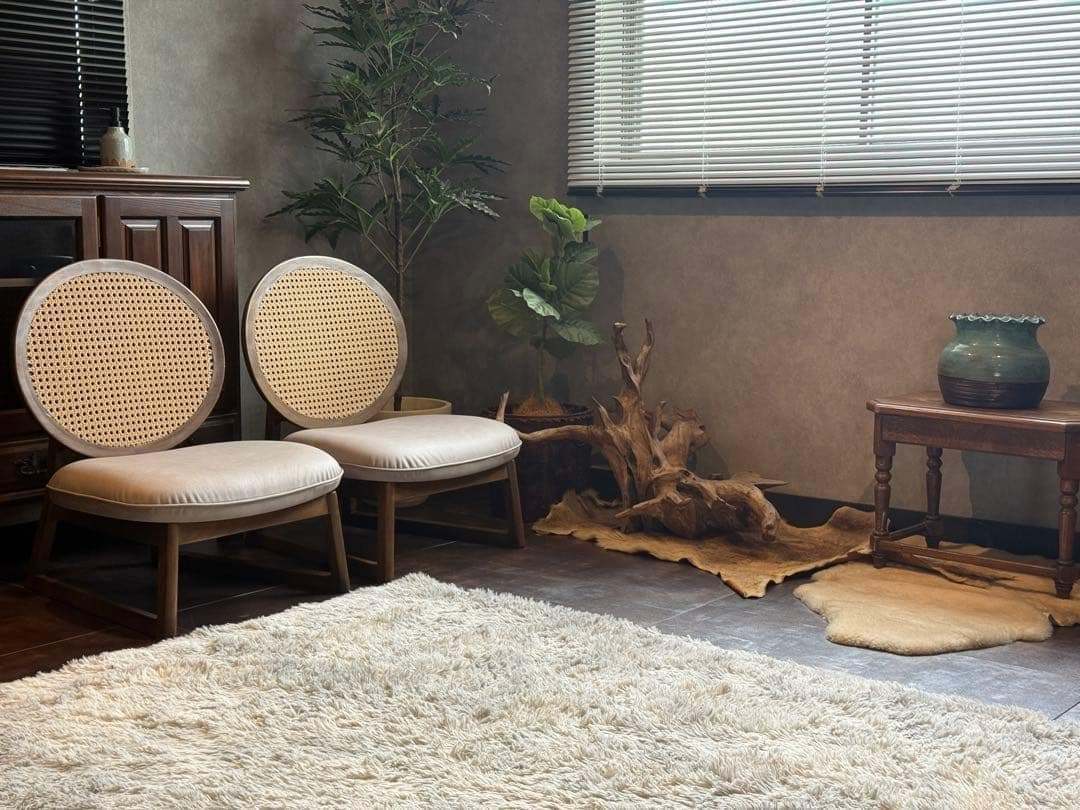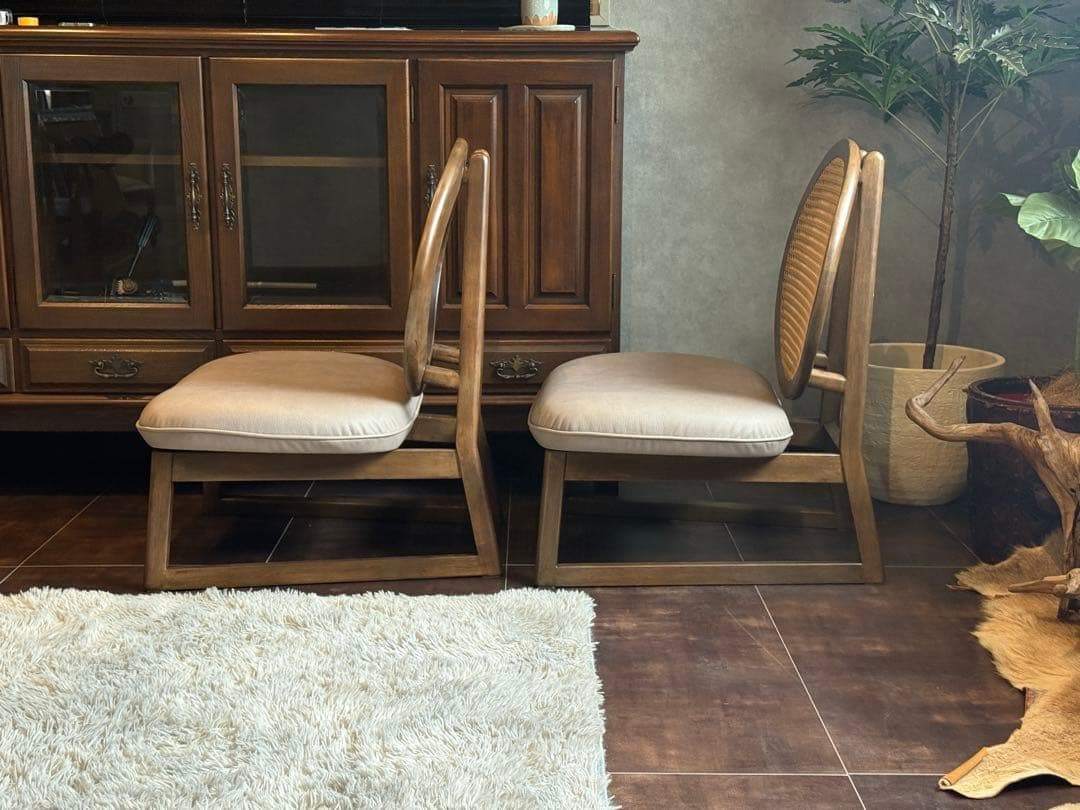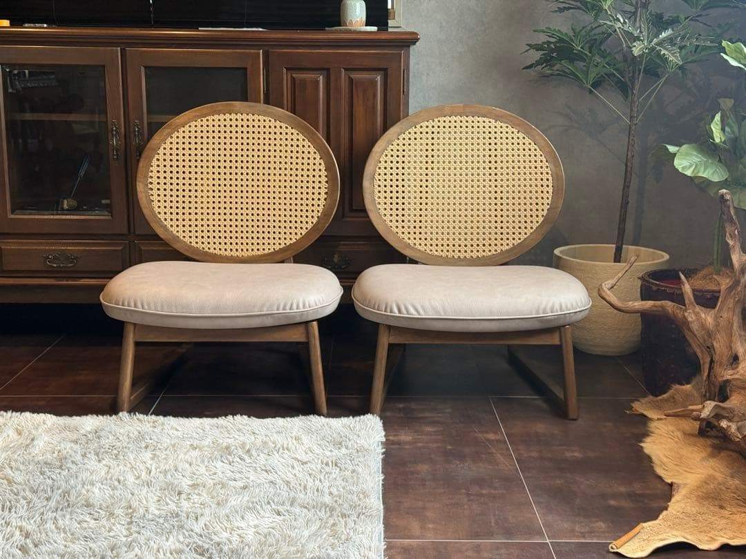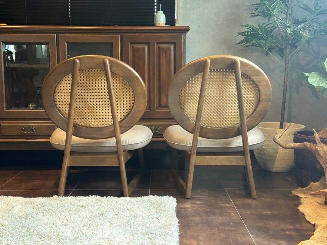 やさしい色合いと軽やかな佇まいが魅力の富士家具製のラタンローチェア。