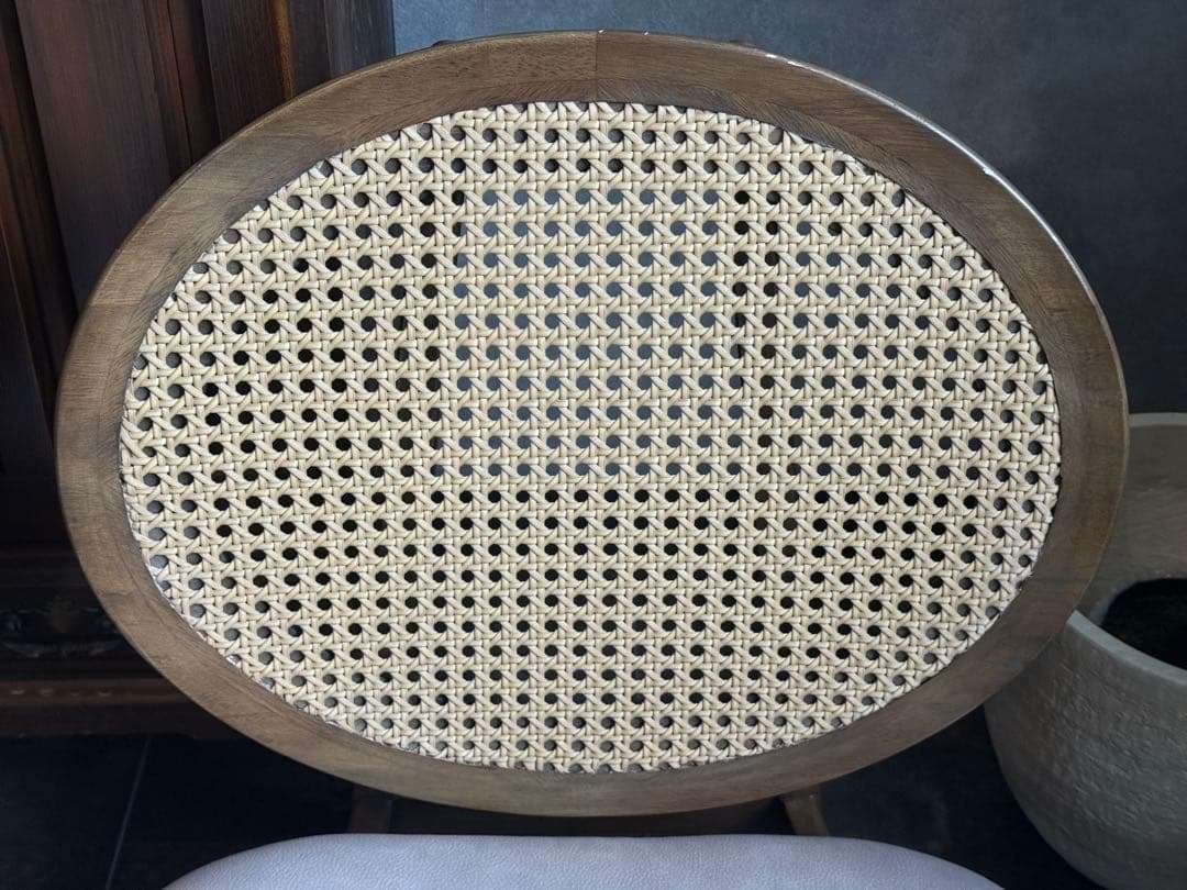 韓国インテリアでも人気のカゴメ編み背もたれと、丸みを帯びたフォルムが愛らしく、空間にナチュラルでやわらかな雰囲気をもたらします。