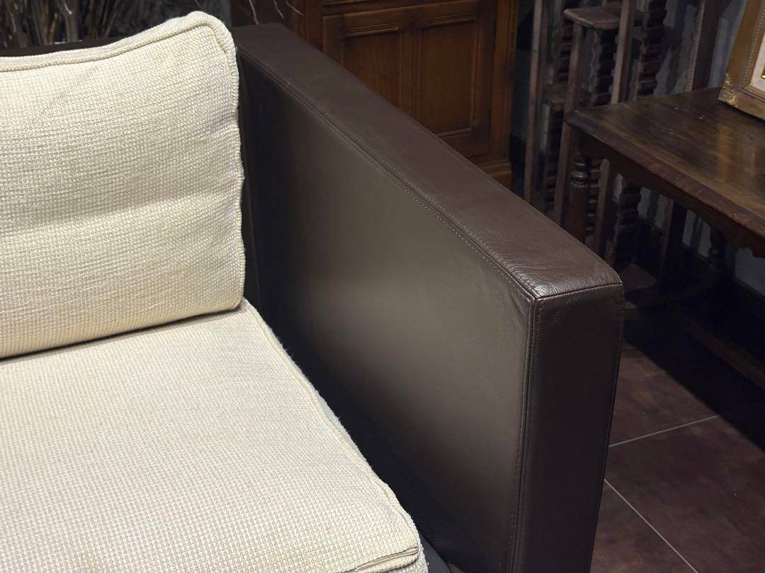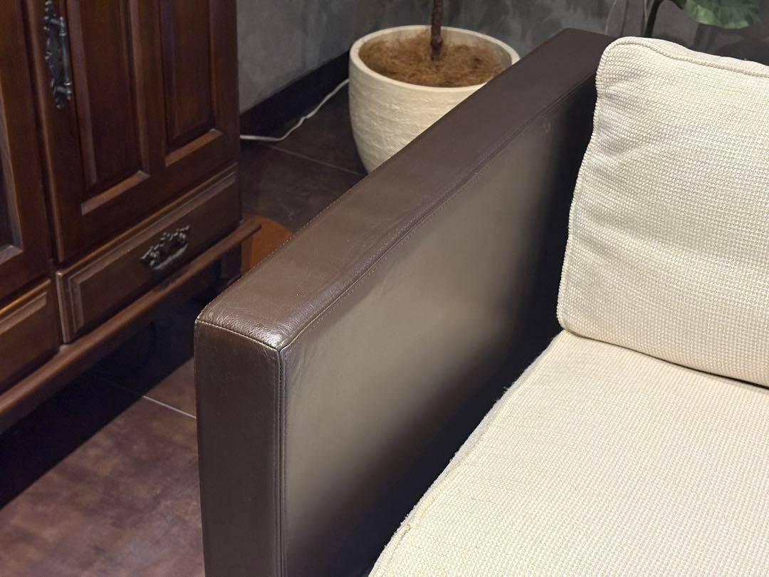 ファブリックとレザーのコントラストや、すっきりとしたシルエットが特徴で、フランス家具ならではの上質な空気感を纏っています。