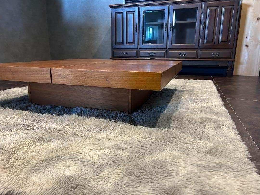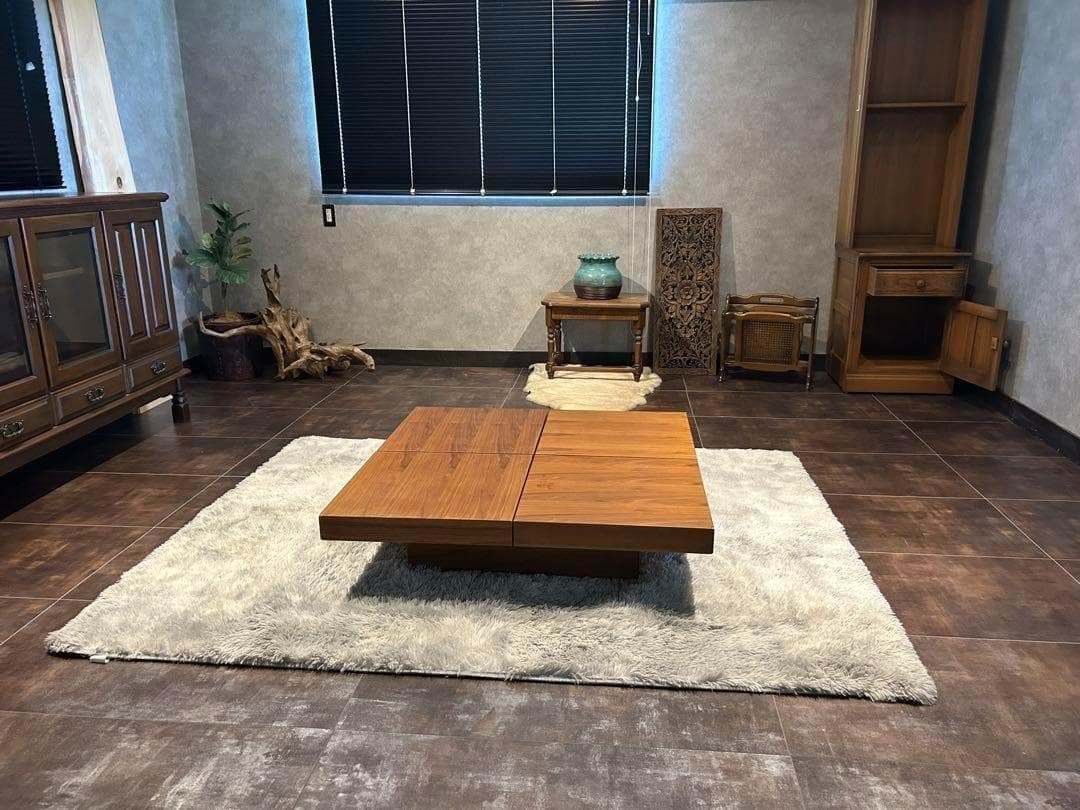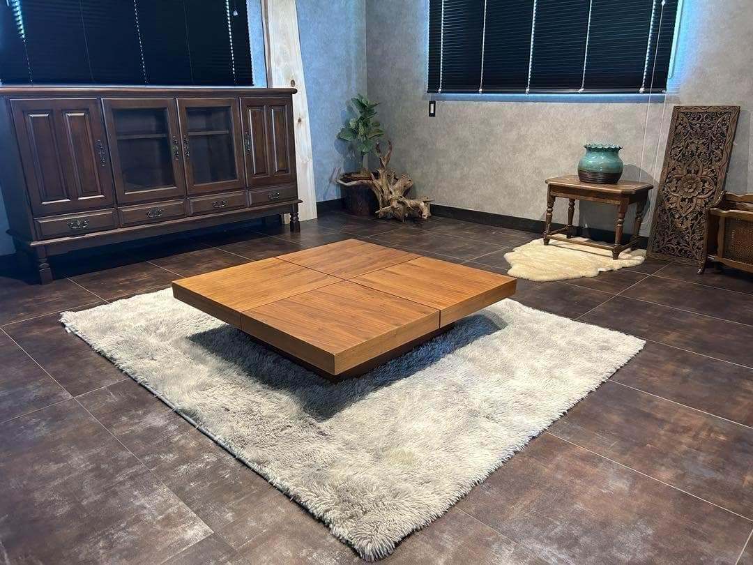 重厚感と洗練を兼ね備えたスクエア型ローテーブル。
