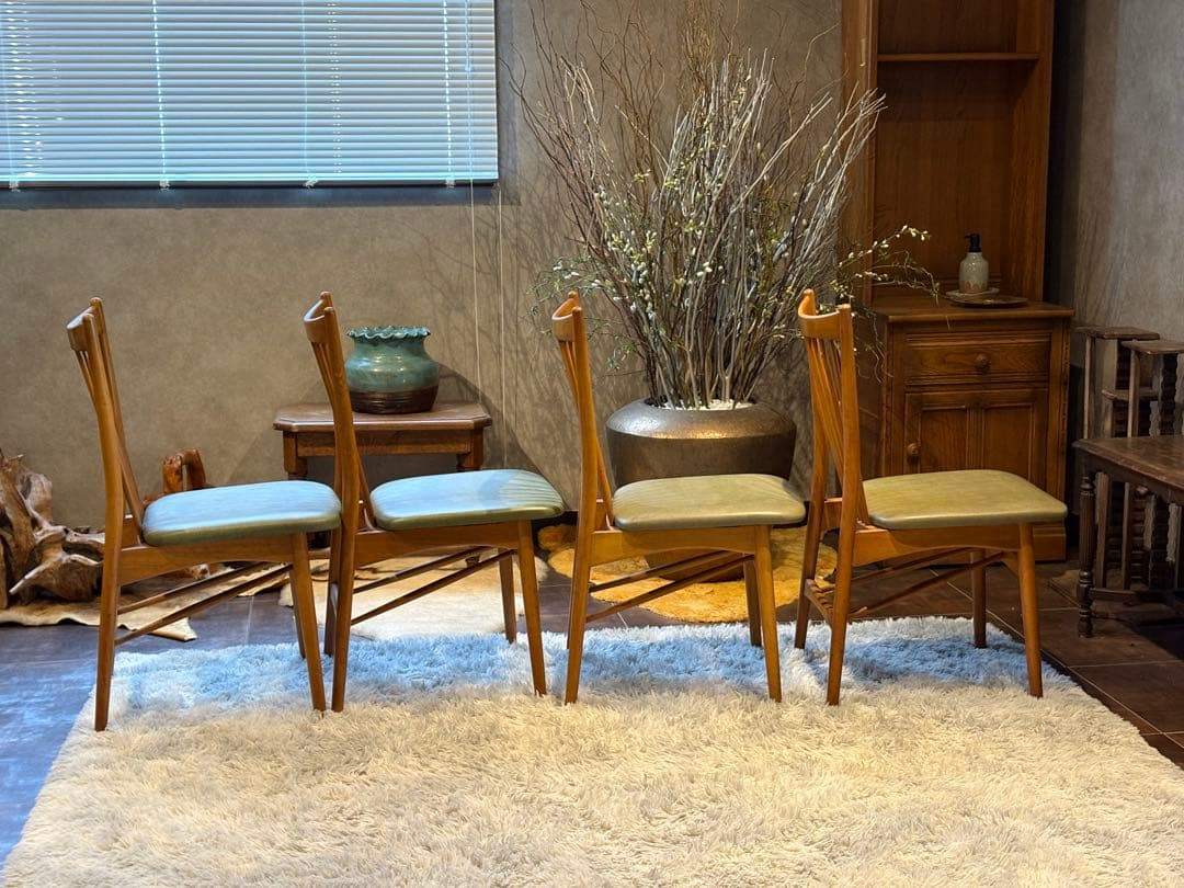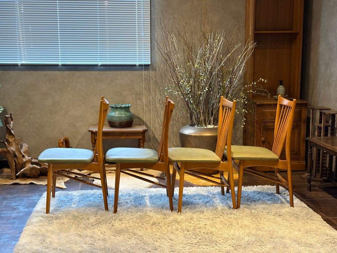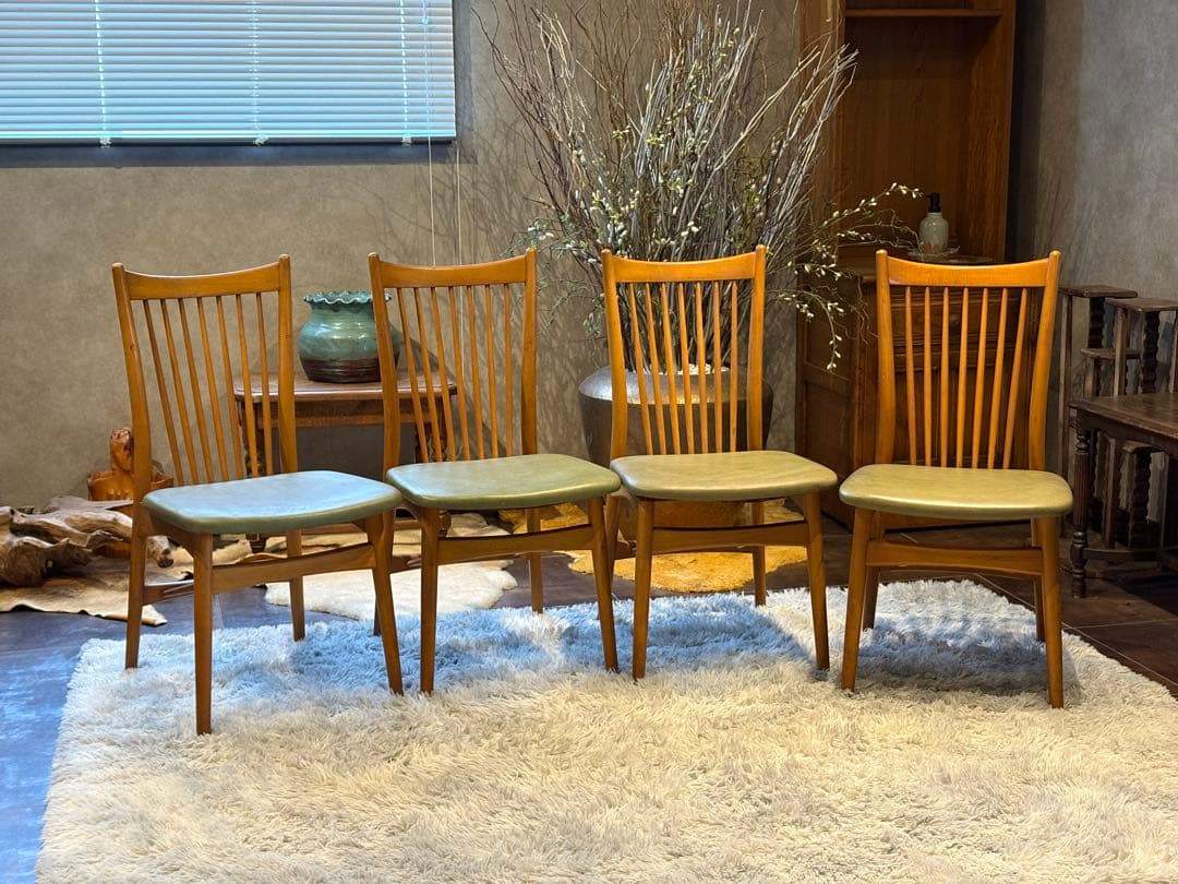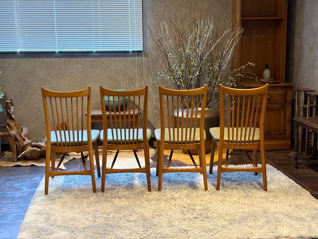 レトロ 飛騨産業 キツツキマーク ビンテージ スポークチェア 4脚セット Sn