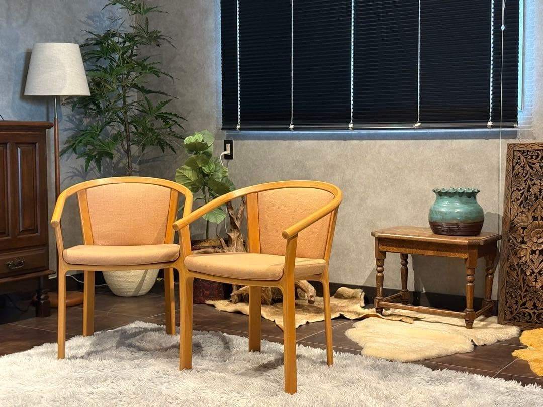 ヴィンテージ マグヌスオルセン MAGNUS OLESEN デンマーク製 北欧家具 シンプル ビンテージ アンティーク デンマーク製 ファブリック アームチェア アームソファ かもめ食堂 北欧暮らし ラウンジチェア ビーチ材 高級家具 ダイニングチェア デンマーク製 Made in denmark
