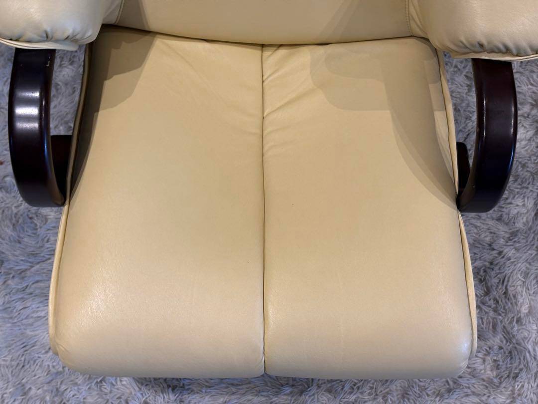 徳島発の高級家具ブランド、富士ファニチアによるベージュレザーソファ。