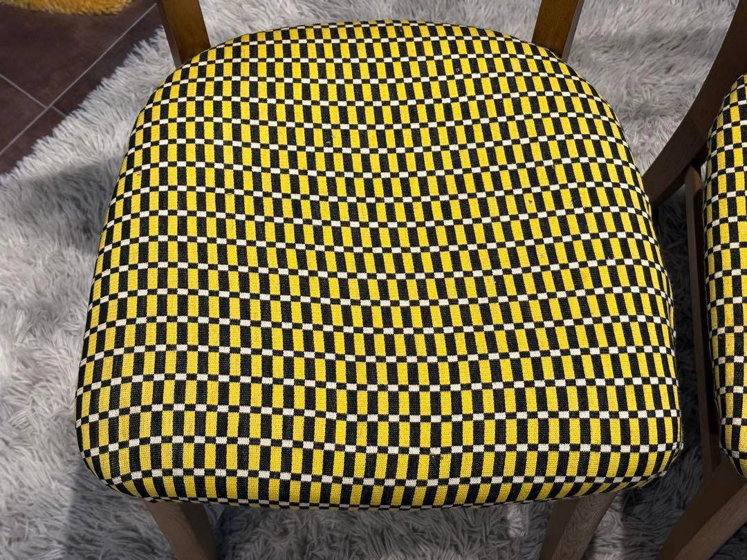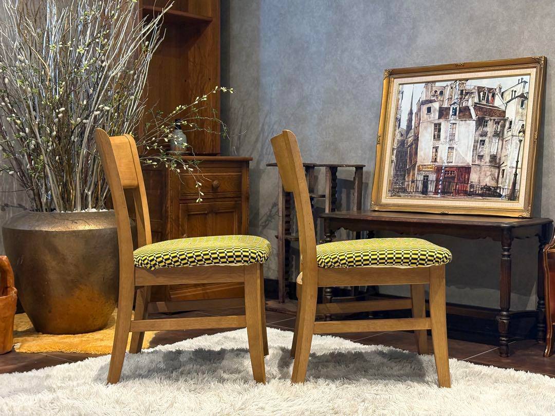 座面のモダンな幾何学模様がアクセントとなり、北欧テイストにもクラシックにも溶け込むデザインです。