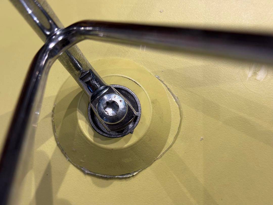 後ろ脚の付け根が一度破損し、外れてしまいましたが、業務用のセメダインで脚を接着し直してあります。