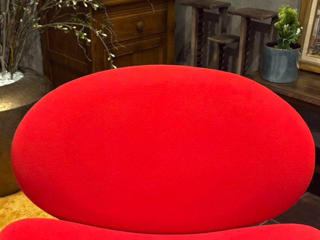 こちらの商品は **Pierre Paulin(ピエール・ポーラン)デザインの名作「オレンジスライスチェア」**を彷彿とさせる、レッドファブリックのヴィンテージチェアです。