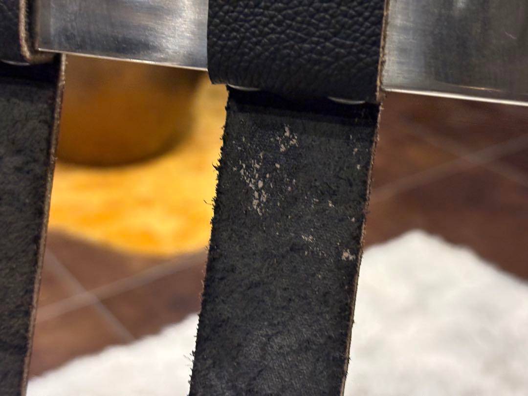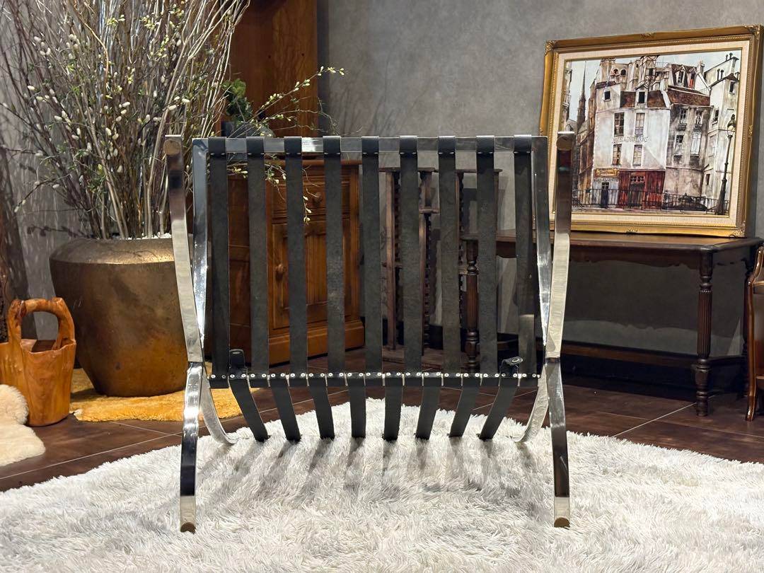 ブラックレザー調のクッションと、クロームメッキの美しいフレームが洗練された雰囲気を演出します。
