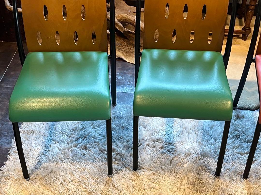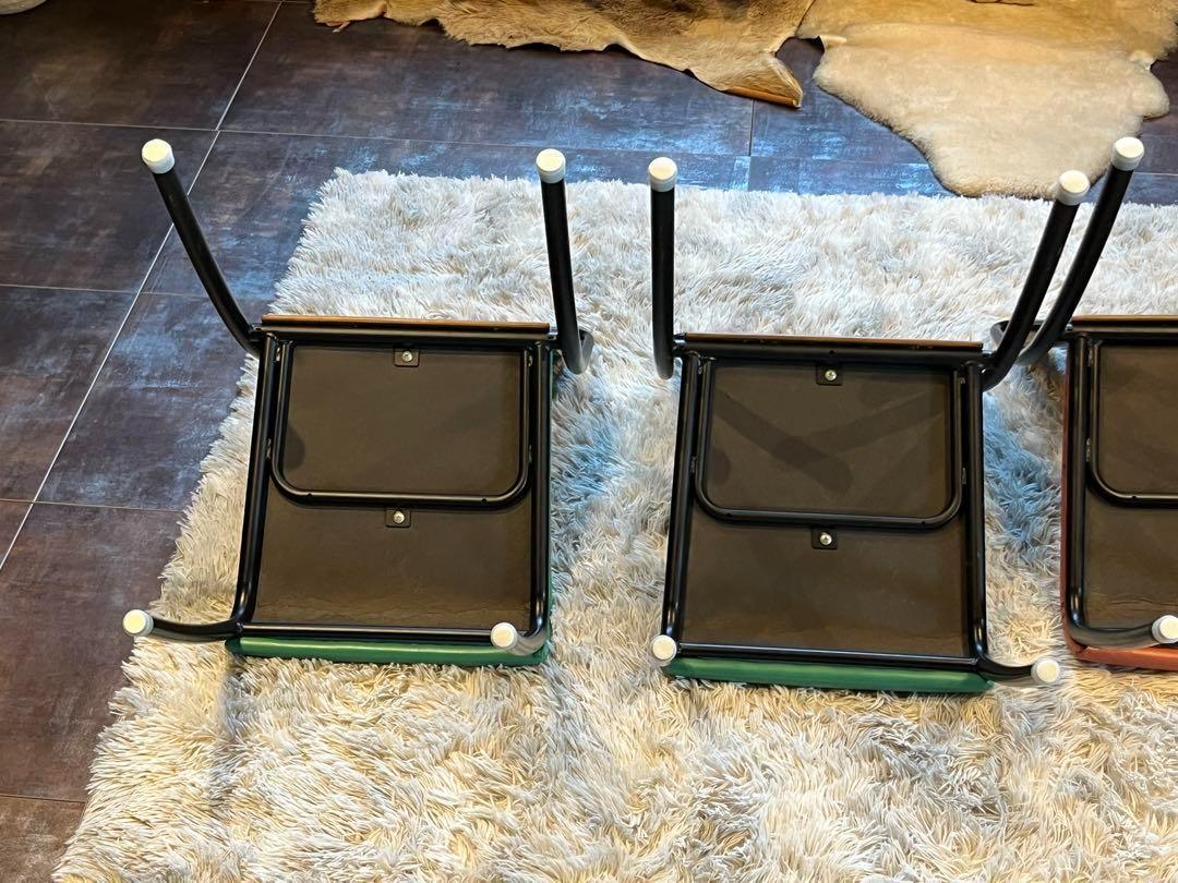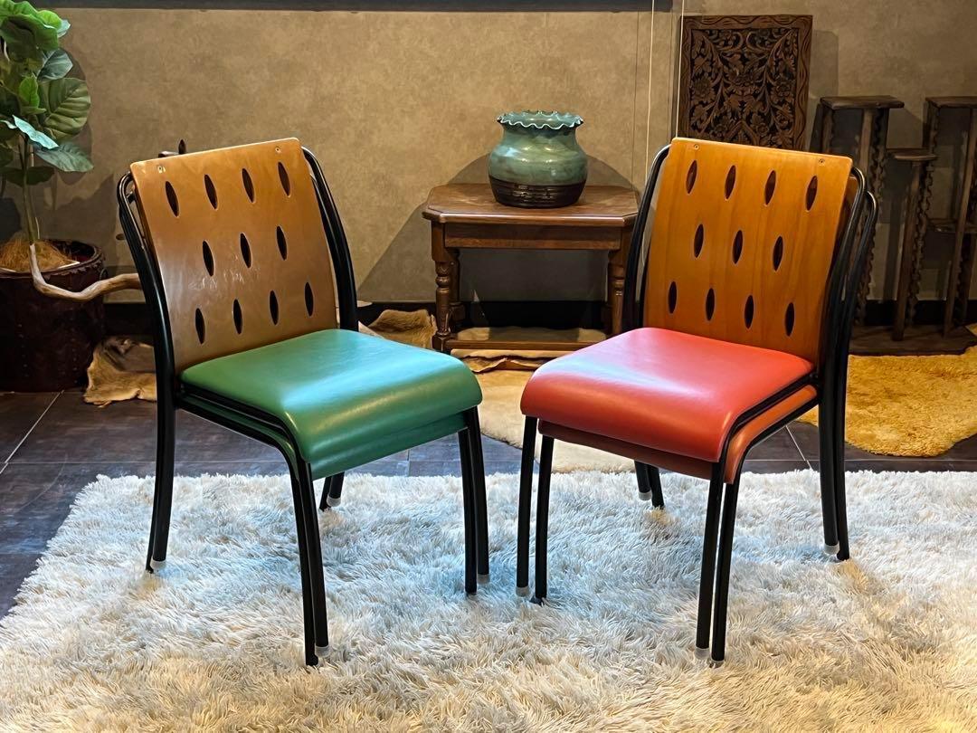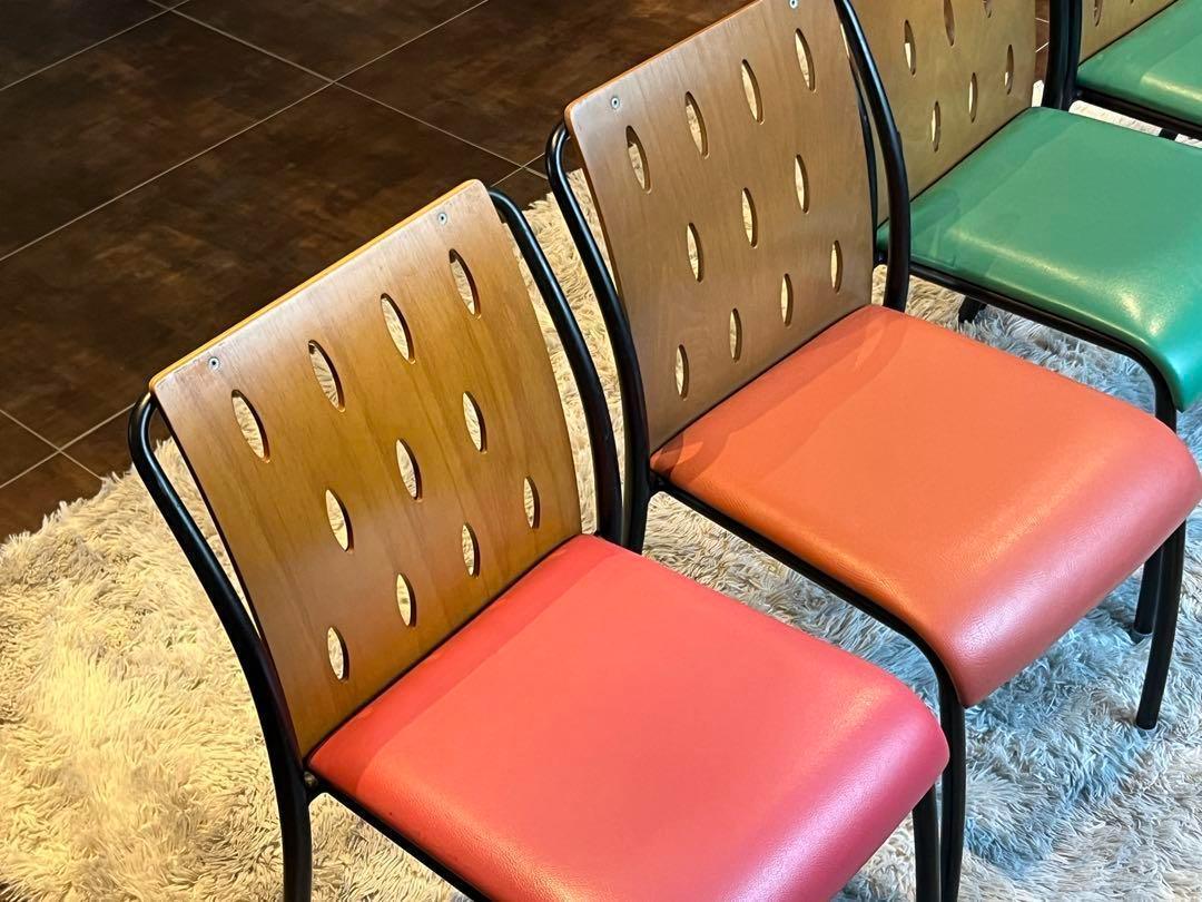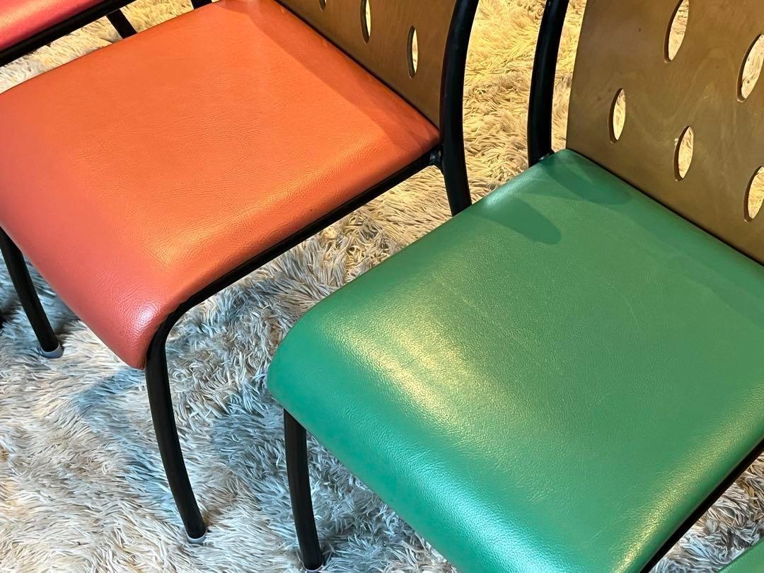 CRESのヴィンテージスタッキングチェア、レトロでポップなデザインが特徴です。