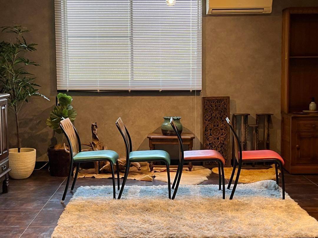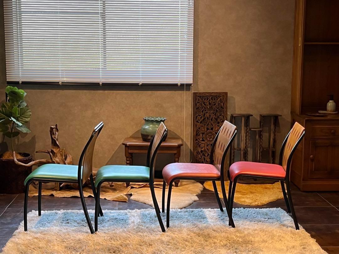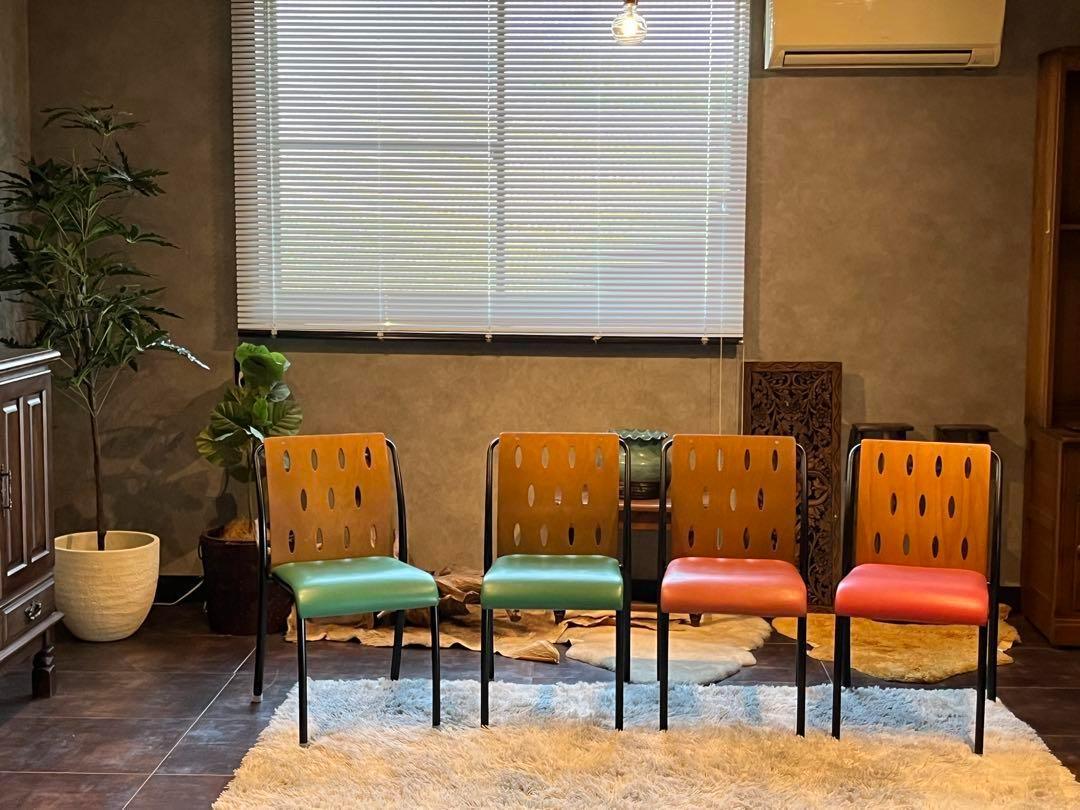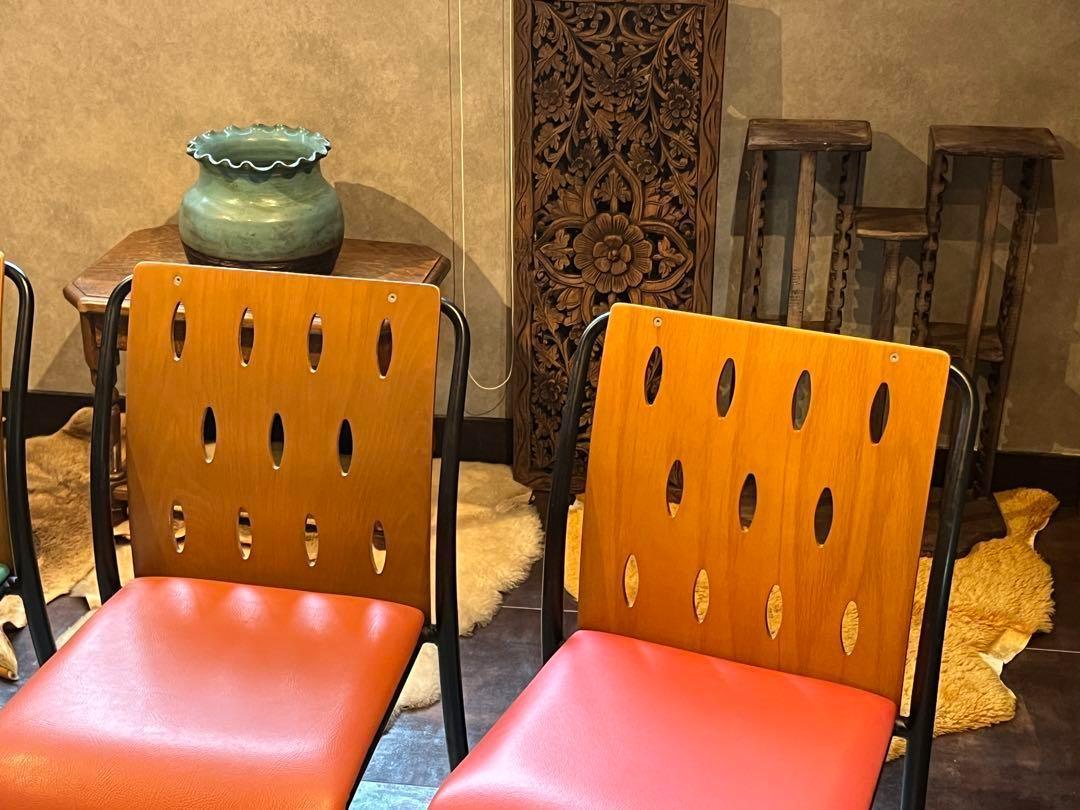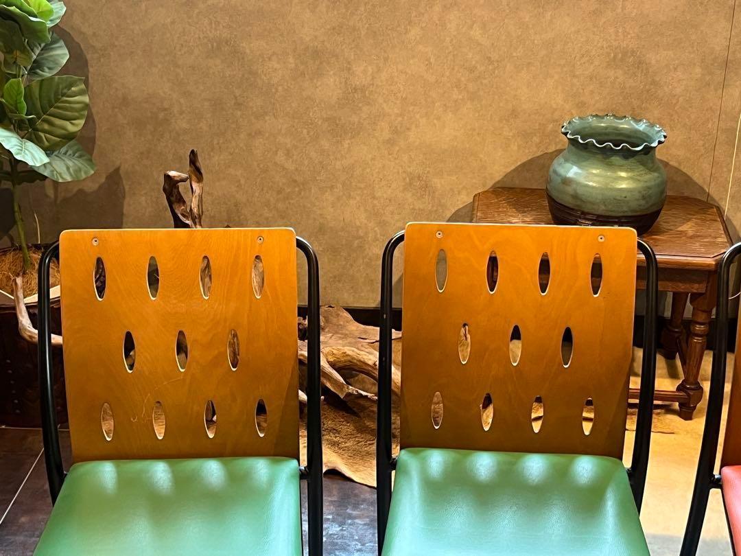 CRESのヴィンテージスタッキングチェア、レトロでポップなデザインが特徴です。