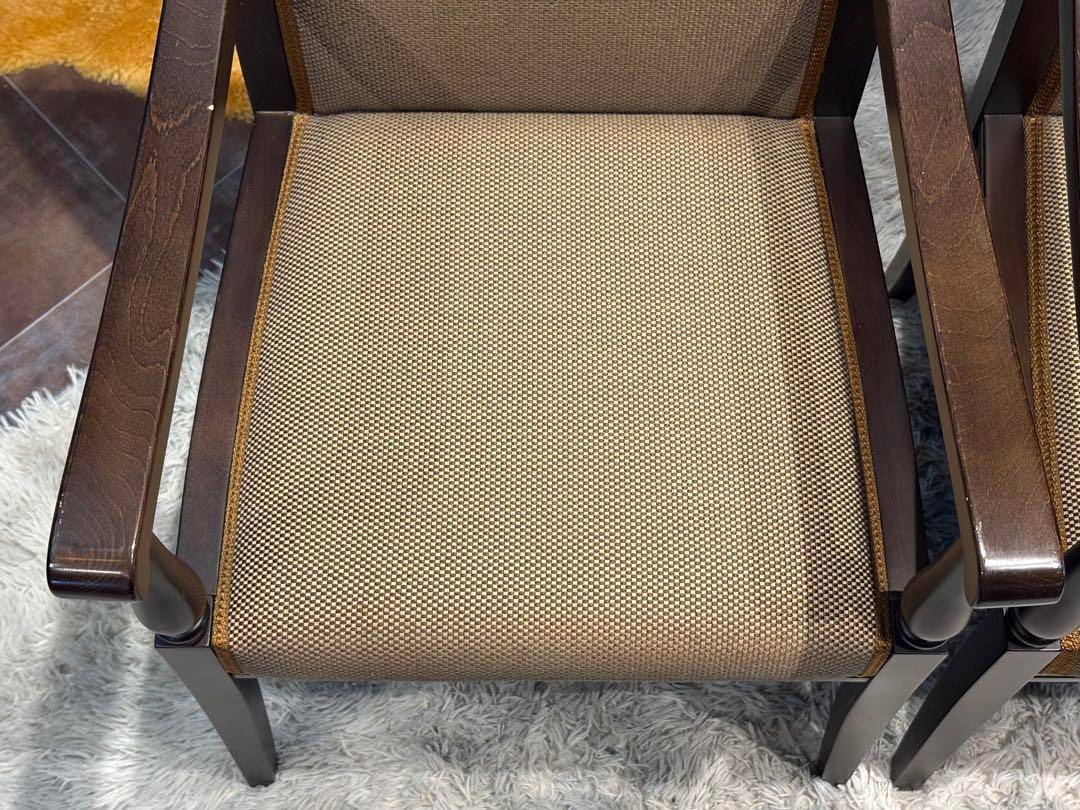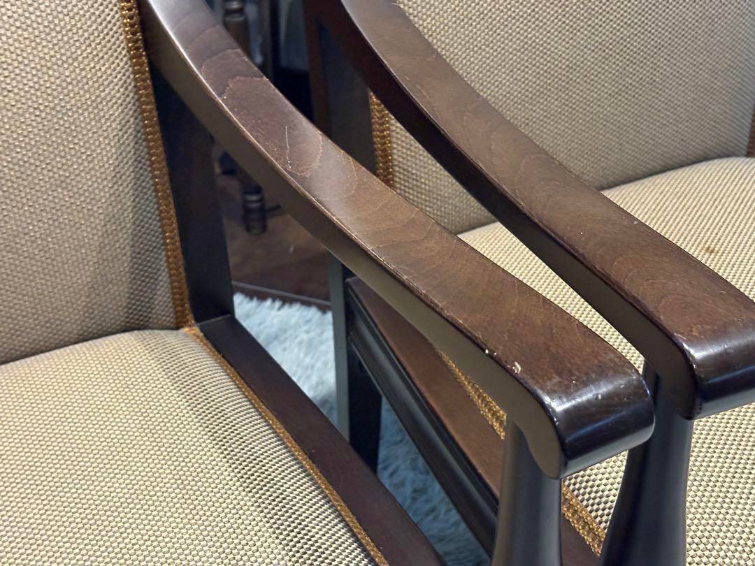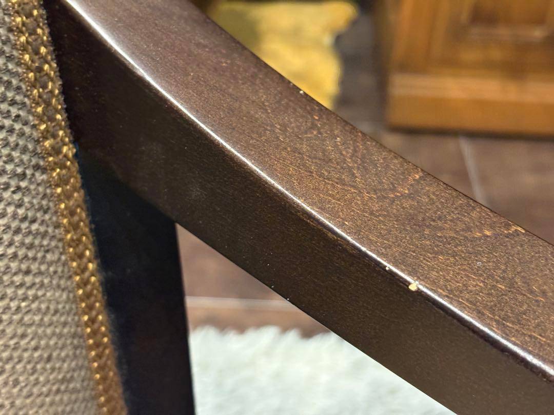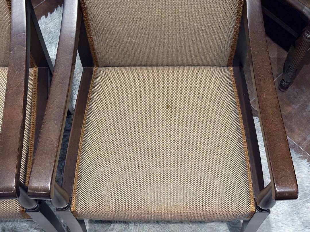 落ち着いた色調のファブリックと、端正なフレームラインが特徴的なヴィンテージのアームチェアです。