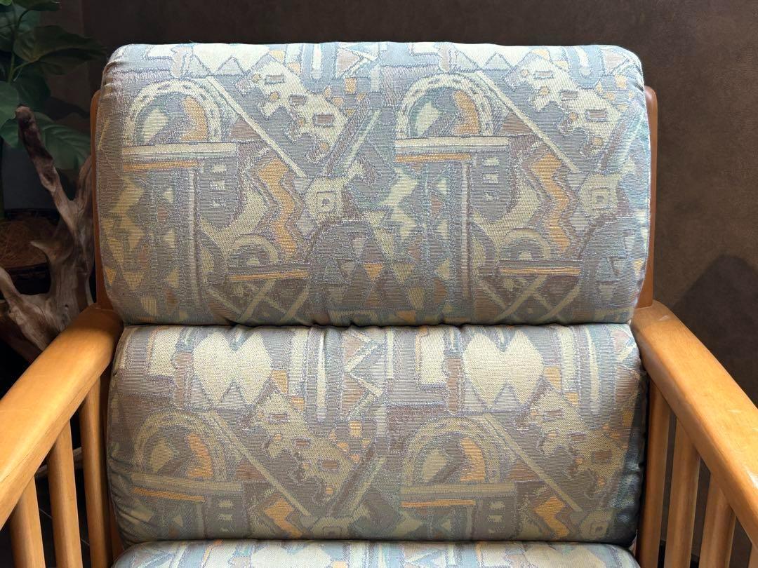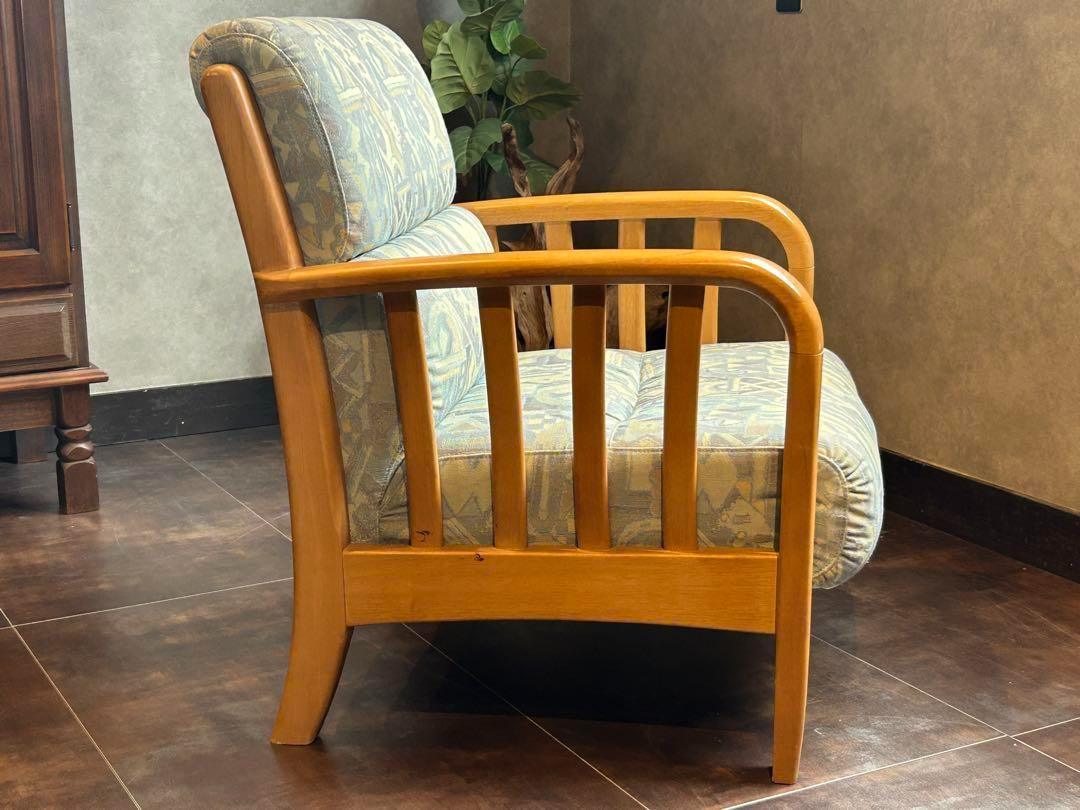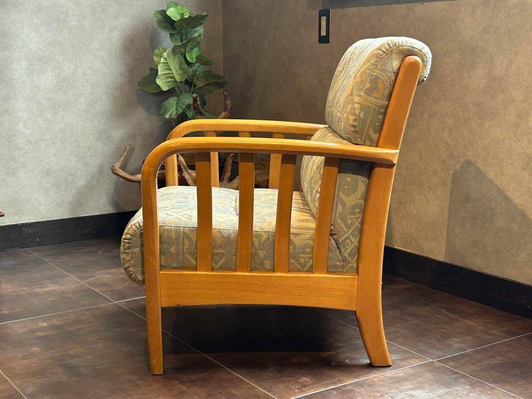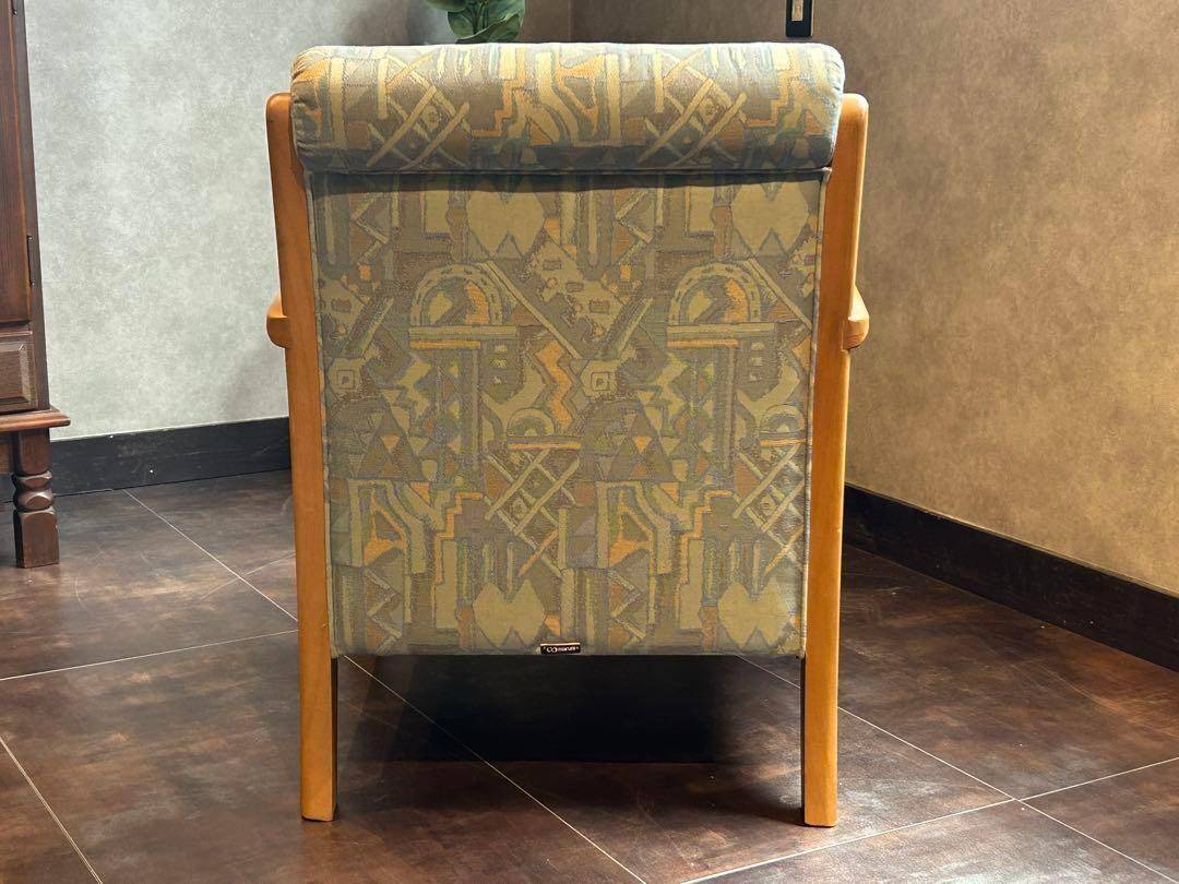 マルニ maruni アームチェア 1人掛けソファ ヴィンテージ ビンテージ 国産家具 レトロ ファブリックソファ 木製フレーム ジャパニーズモダン 幾何学模様 和モダン 北欧風 カフェスタイル リビングチェア 応接間家具 コンパクトソファ モダンインテリア