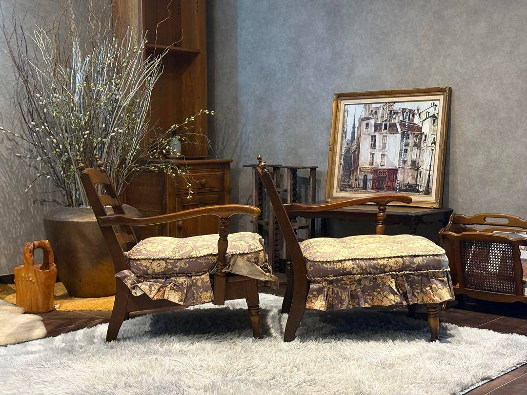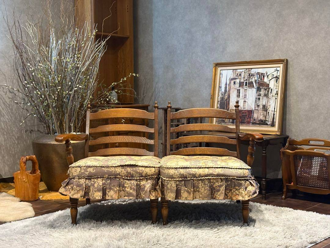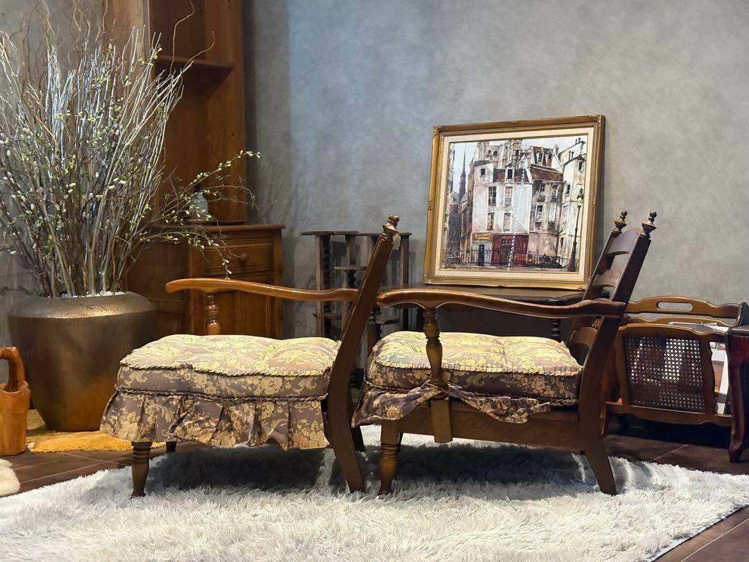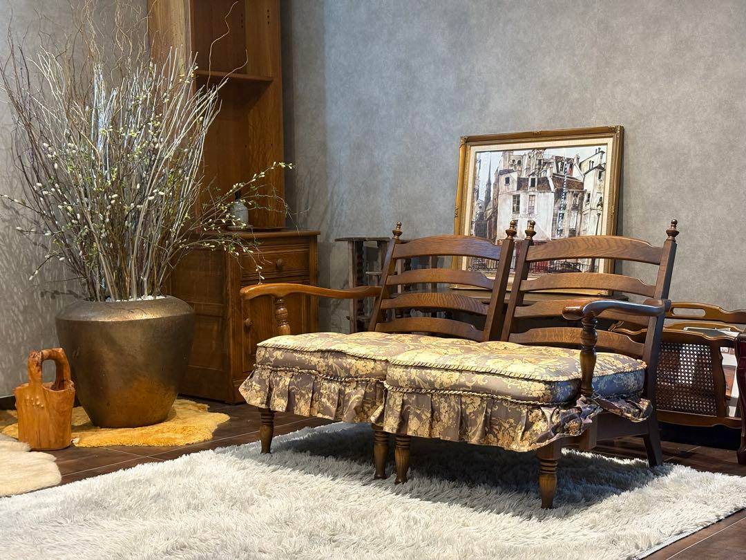 落ち着いた木部とクラシカルなファブリックが、アンティークやヴィンテージテイストのお部屋にもよく調和します。