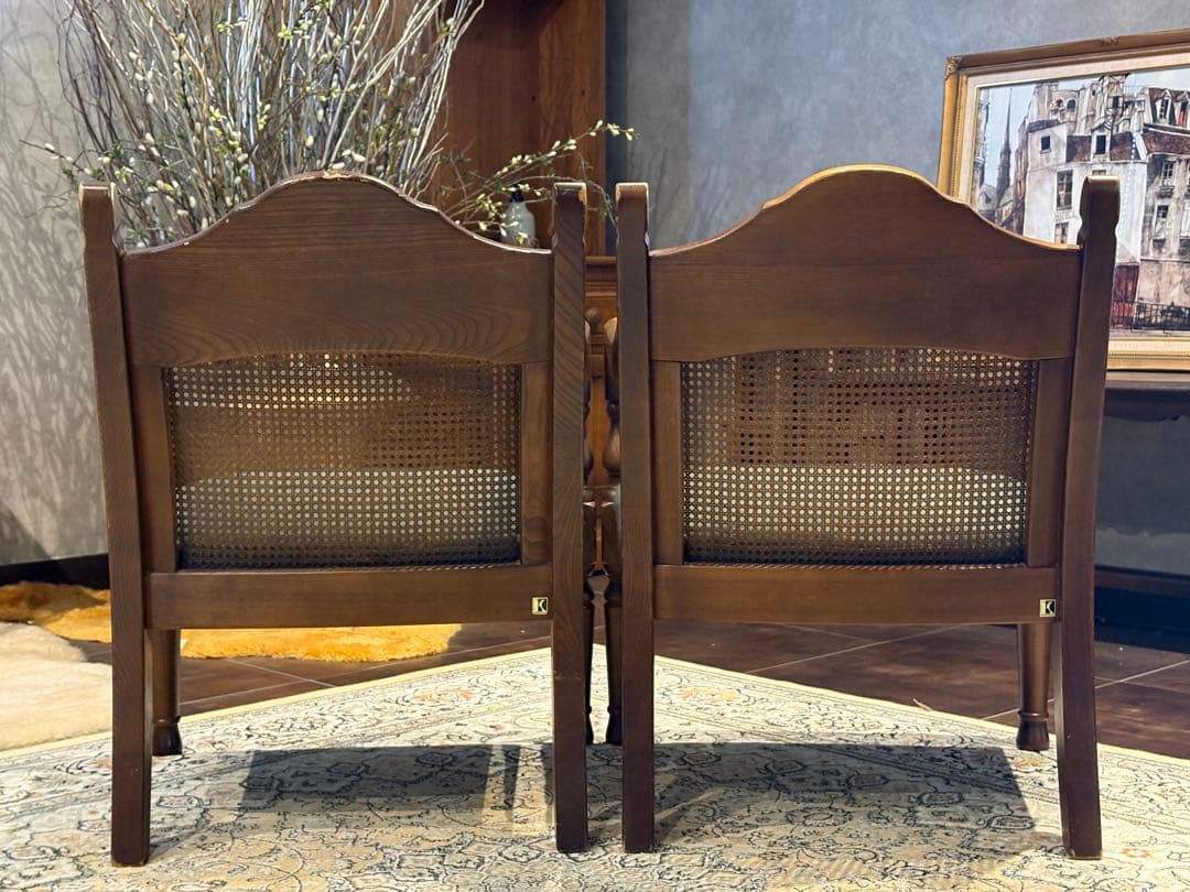 飛騨産業 キツツキマーク アームチェア ダイニングチェア リビングチェア 木製チェア 籐張り ラタン リメイク アンティーク ヴィンテージ ビンテージ クラシック インテリア家具 HIDA