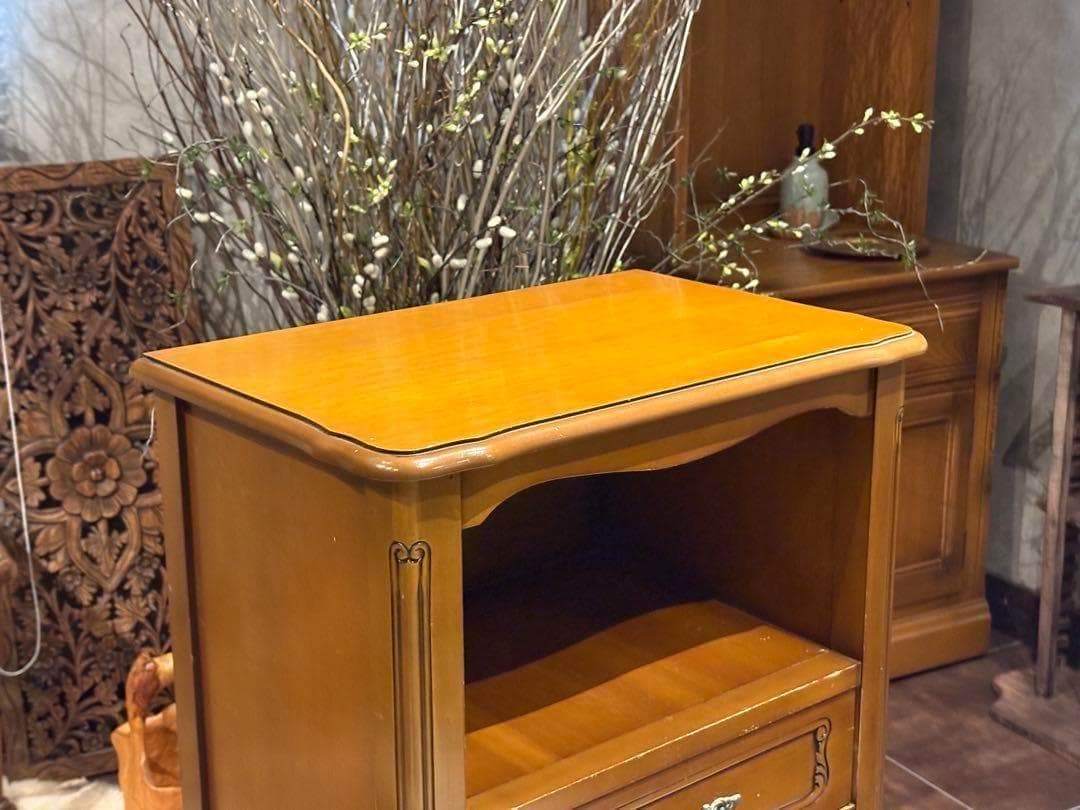 サイドテーブルやナイトテーブルとしても活躍し、ベッドサイドやリビングの一角に置くだけで、空間にクラシックな趣きを添えます。