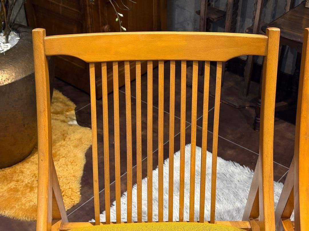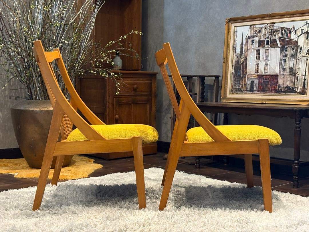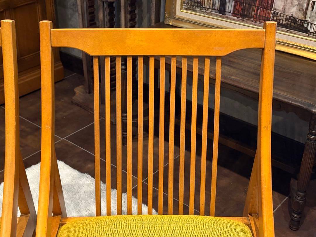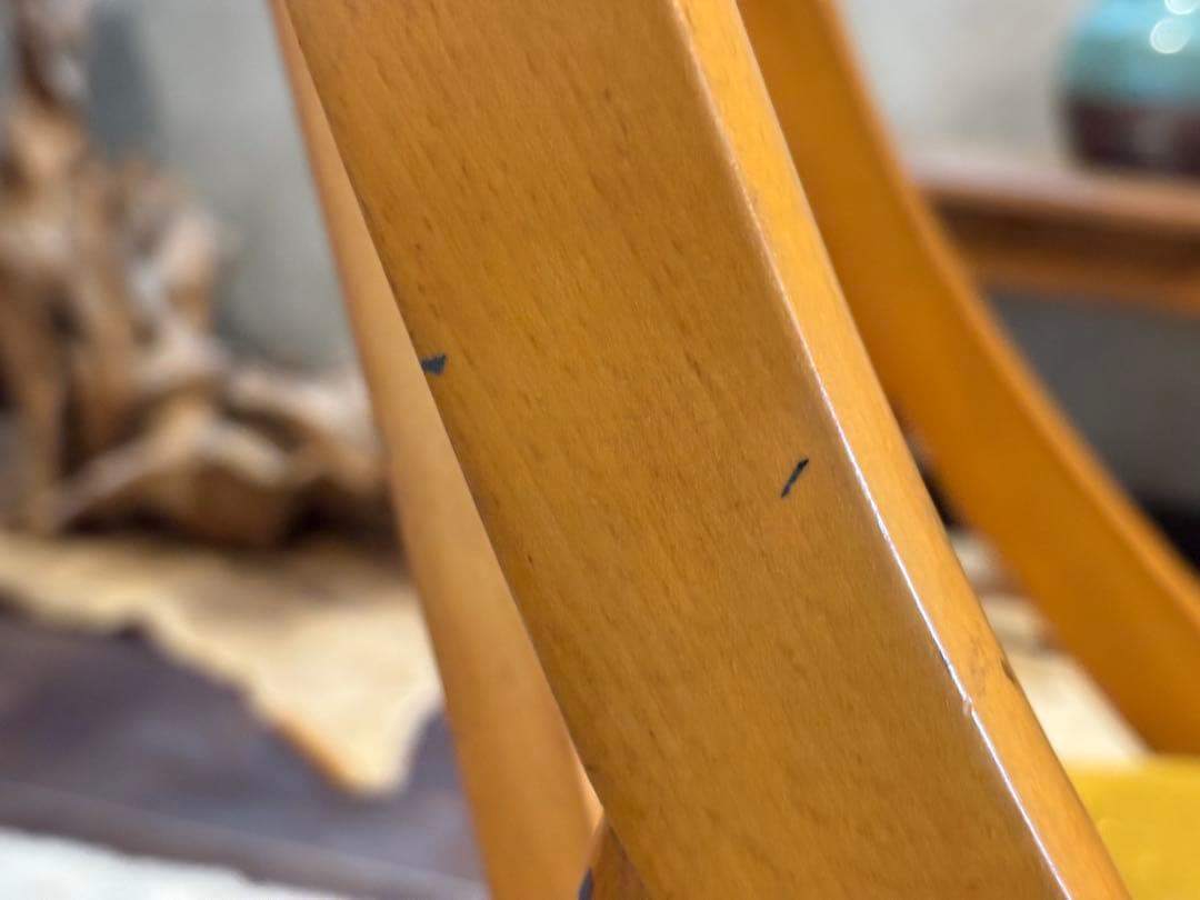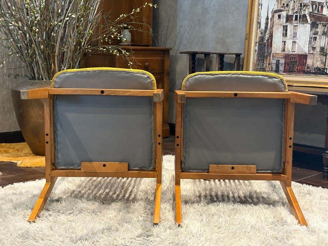 座面は尾州生地でリメイクされ、鮮やかなイエローのファブリックが空間に華やかさを添えます。