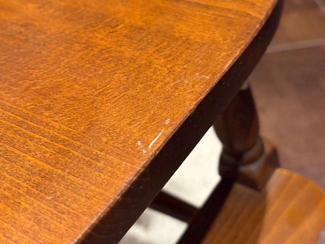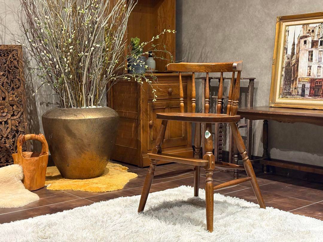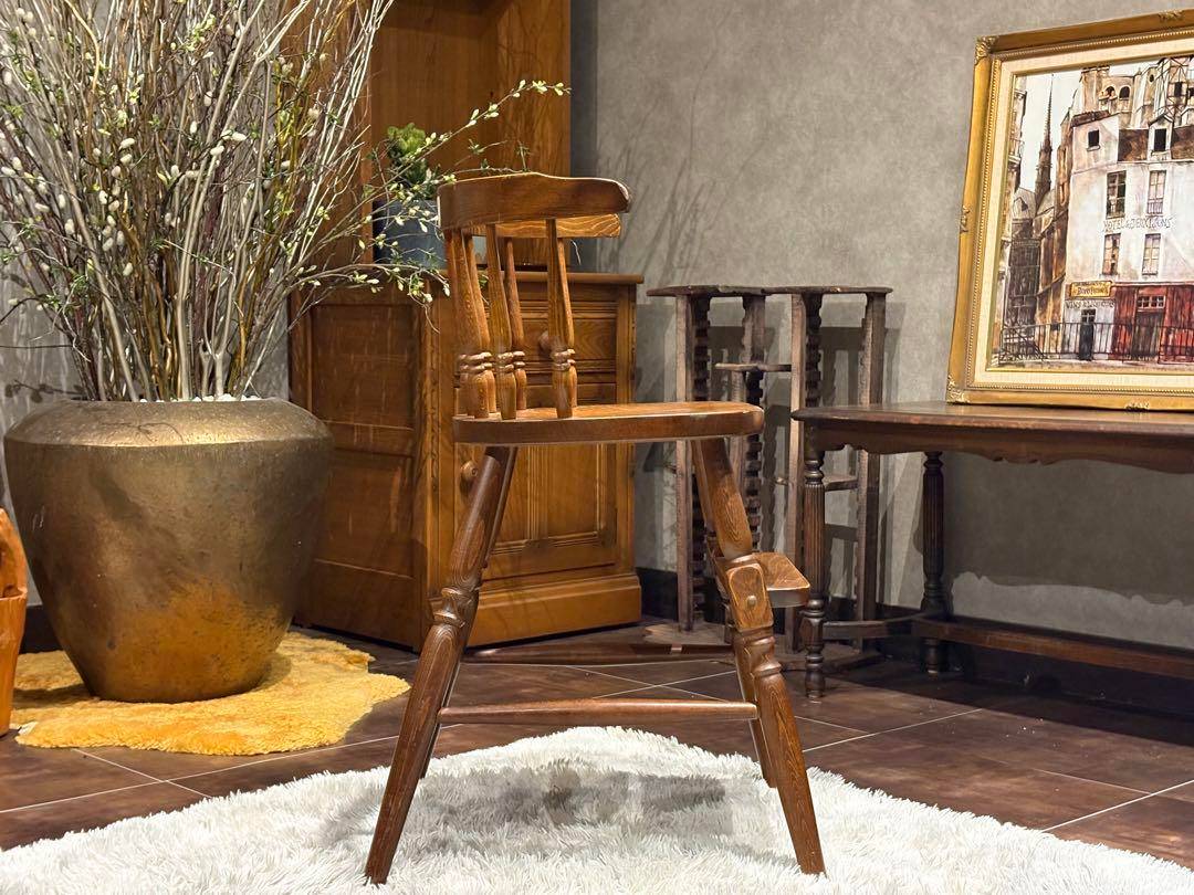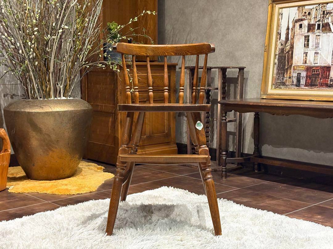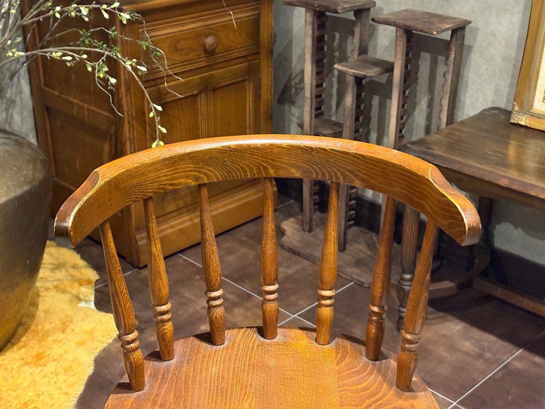背もたれや脚部のスピンドル装飾が美しく、クラシカルな雰囲気を漂わせます。