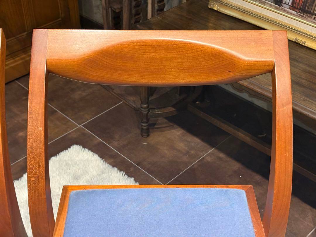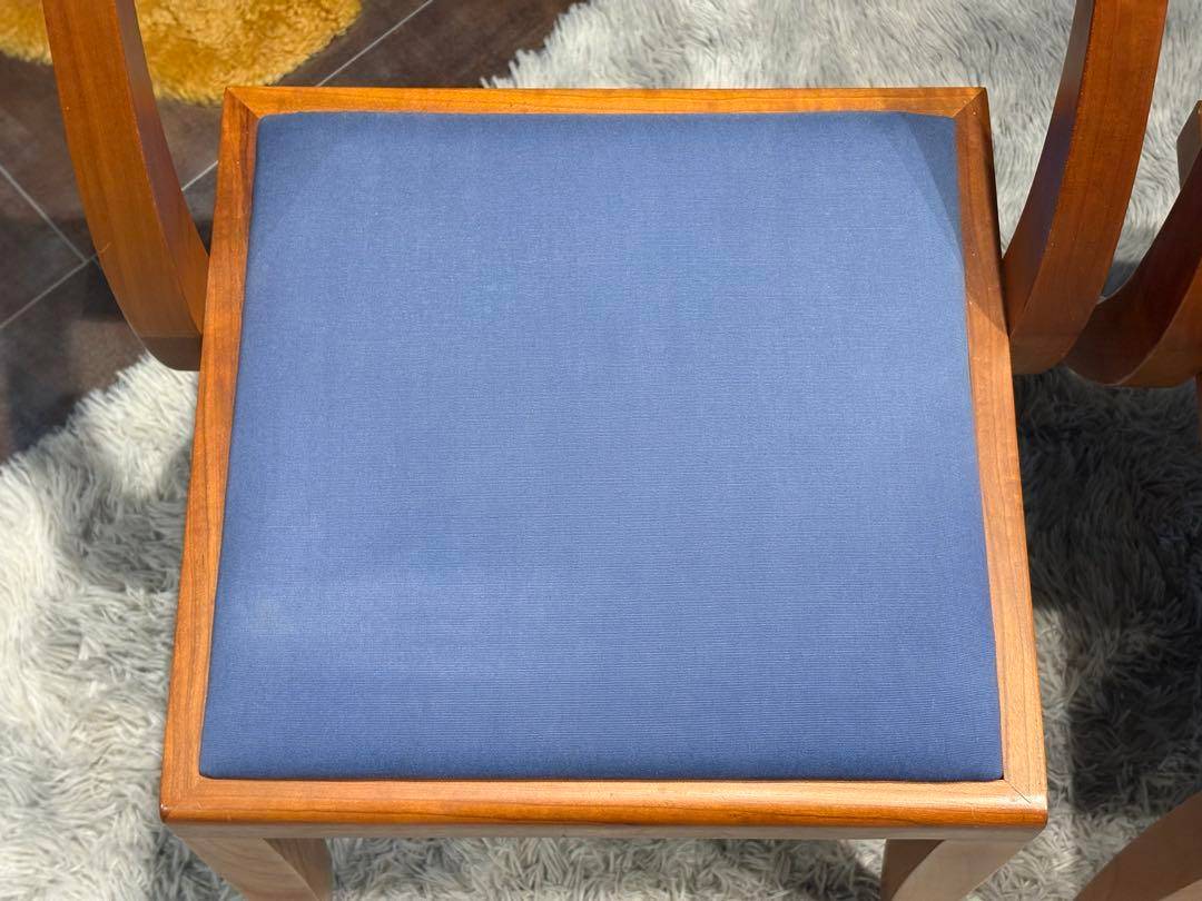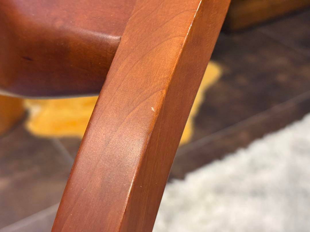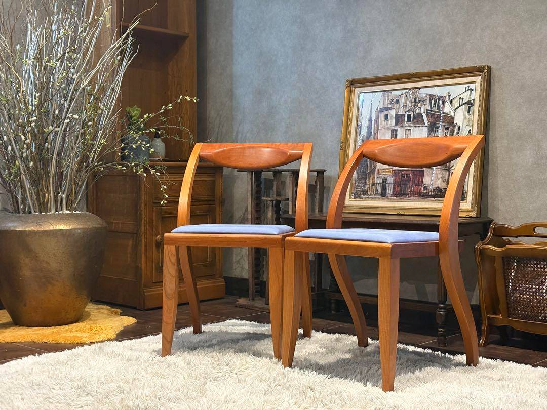 美しい木目と曲線的なデザインが特徴で、背もたれの優雅なラインが空間に洗練された雰囲気を与えます。