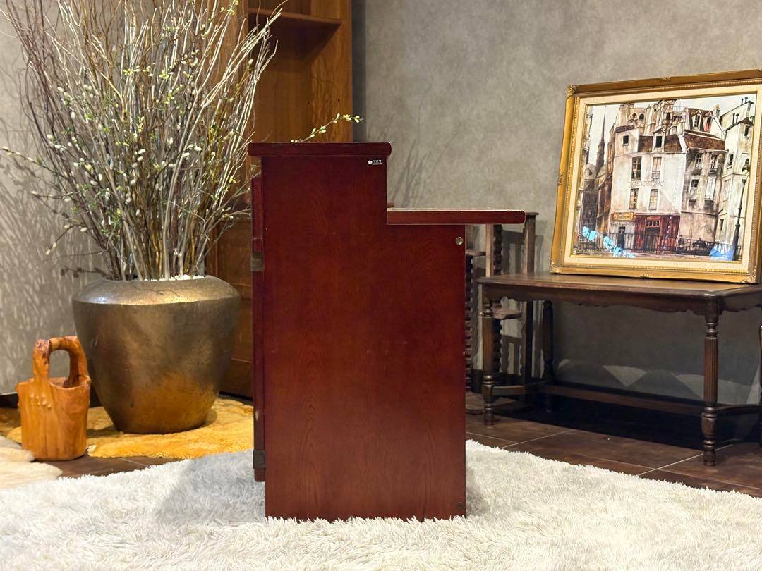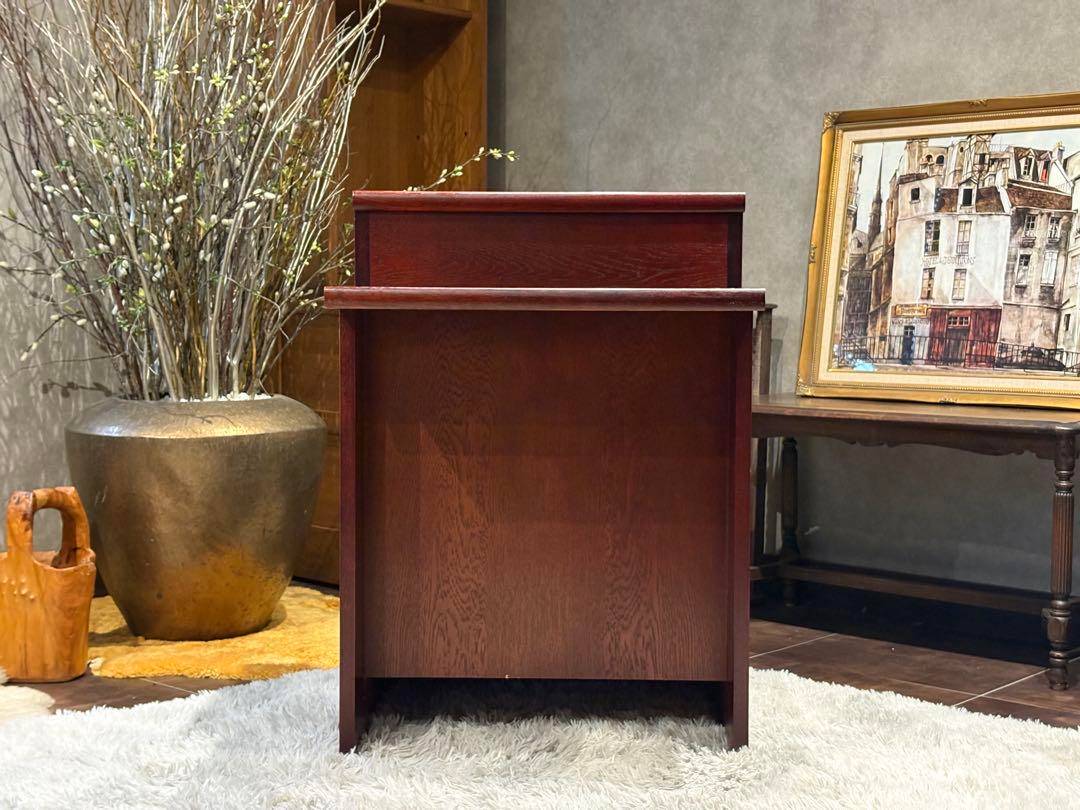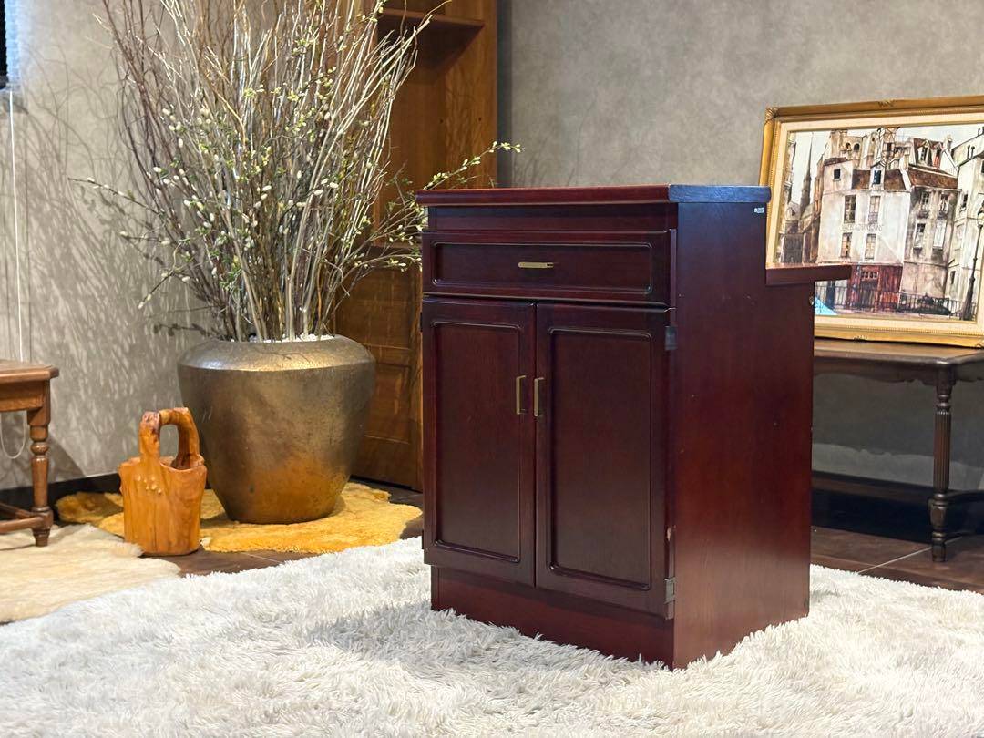 引き出しと扉付きの収納スペースで、小物や書類の整理に便利。