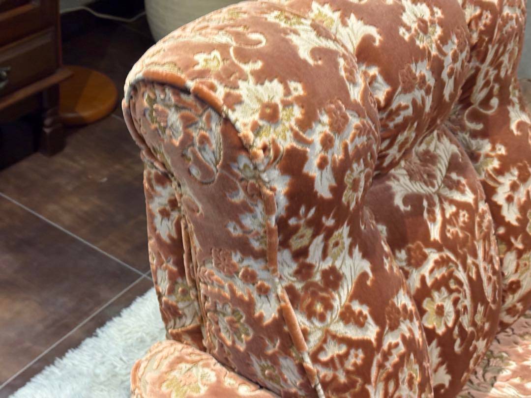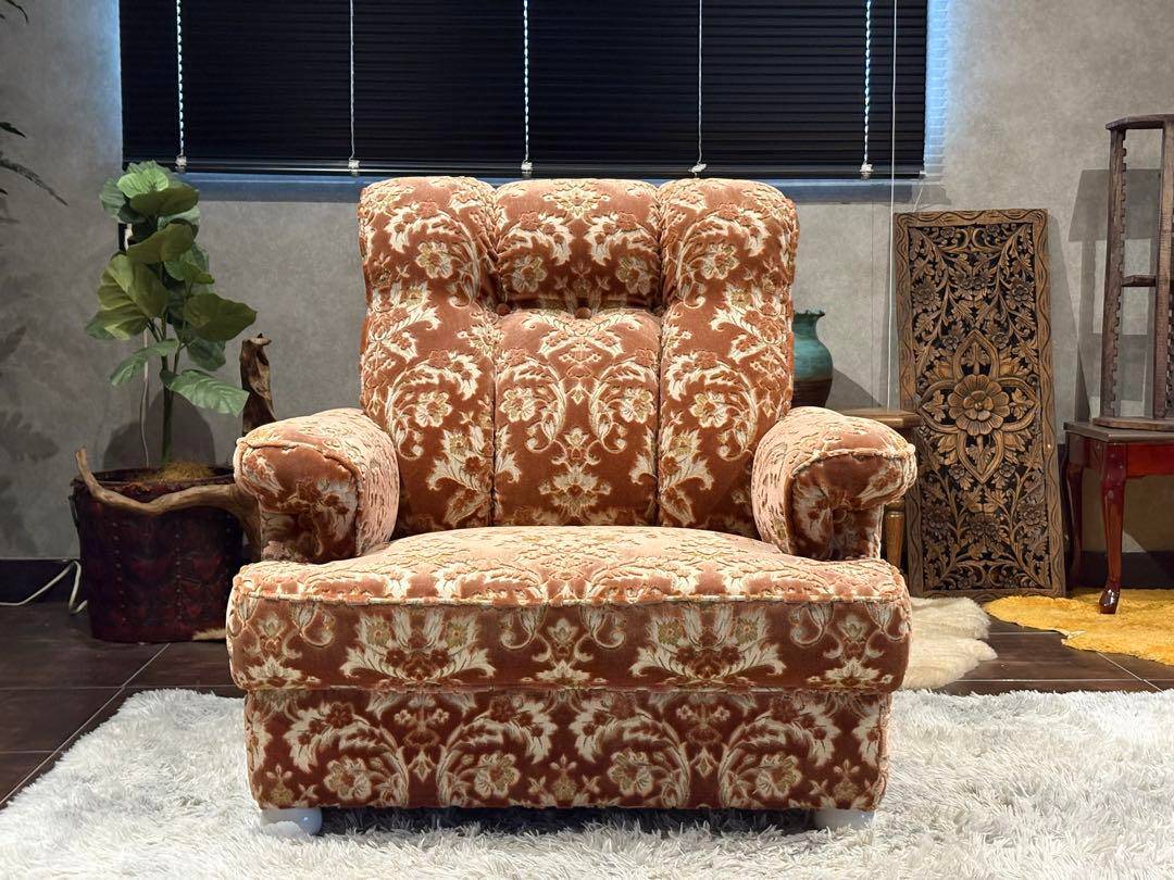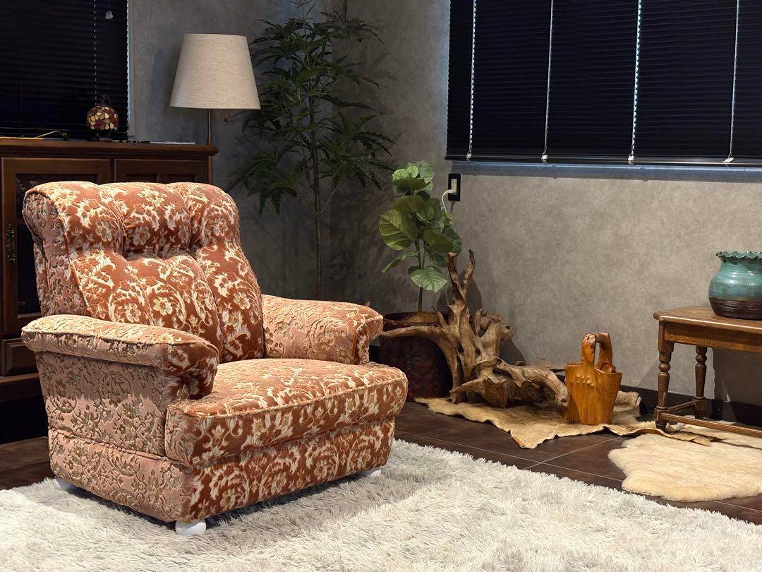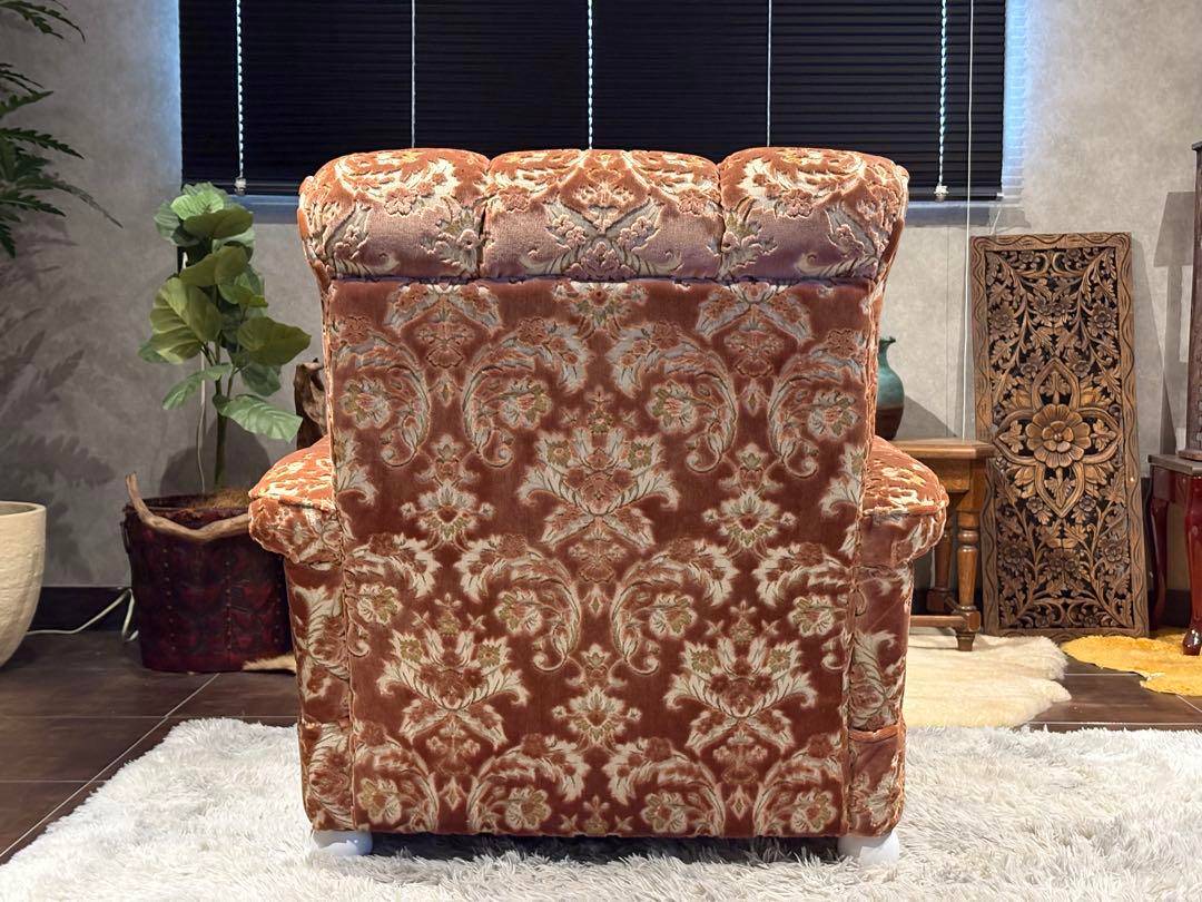 ベロア調の柔らかな生地が上品なクラシック感を演出し、存在感のあるデザインはリビングや応接室のアクセントとしても最適。