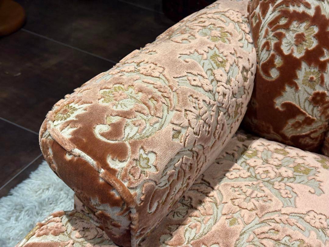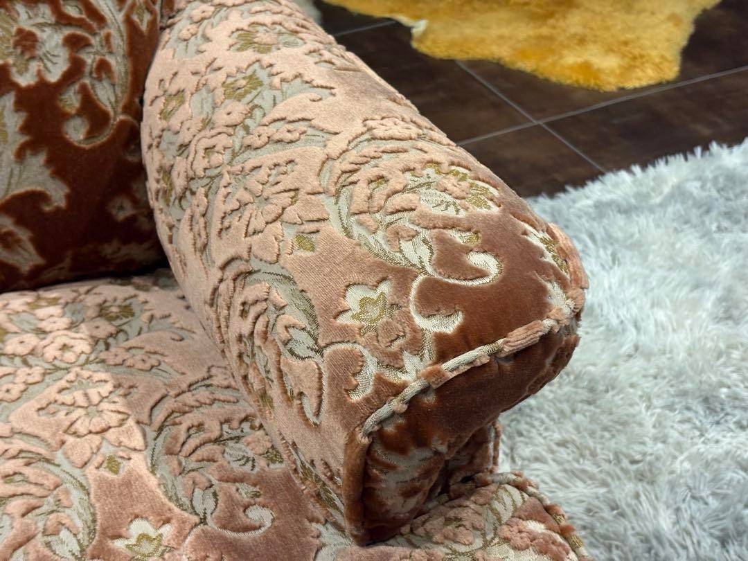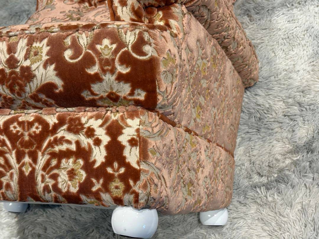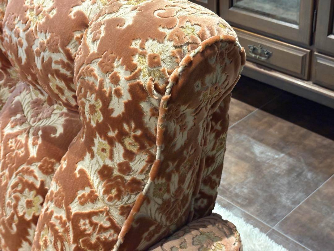 ベロア調の柔らかな生地が上品なクラシック感を演出し、存在感のあるデザインはリビングや応接室のアクセントとしても最適。