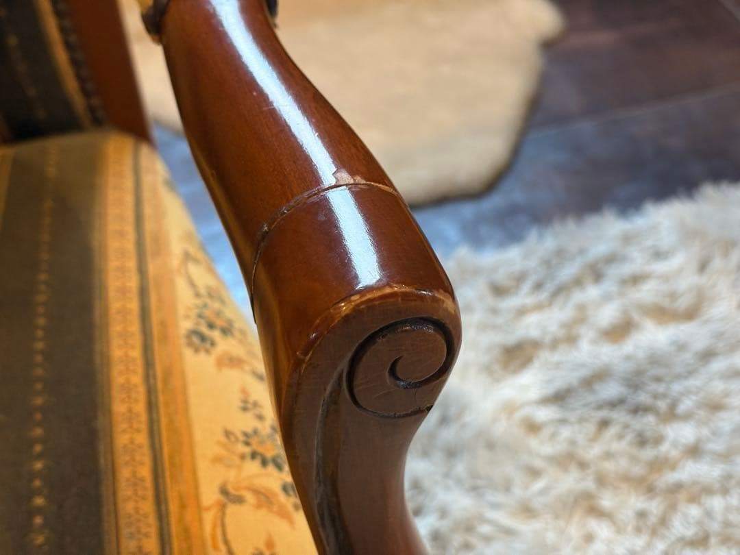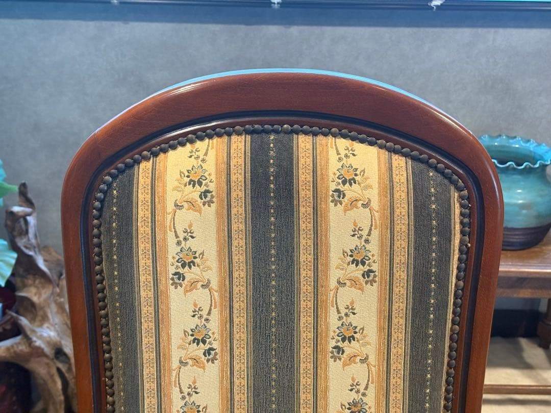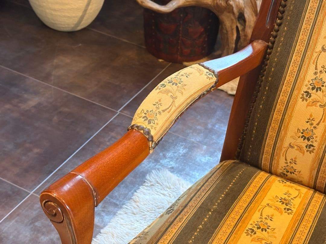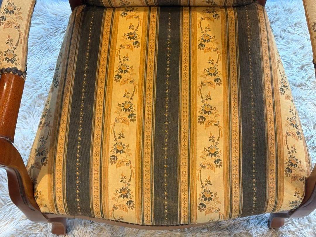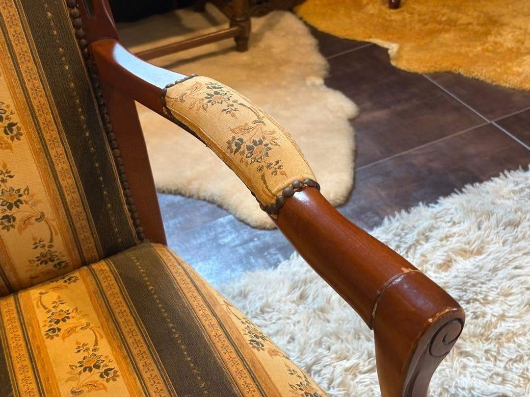ヴィンテージ ビンテージ アンティーク ヨーロピアン ヨーロッパ クラシック クラシカル アームチェア 肘付き椅子 ハイバックチェア ストライプ 鋲打 リベット打ち 輸入家具 ロココ調 ロココ家具 イタリア