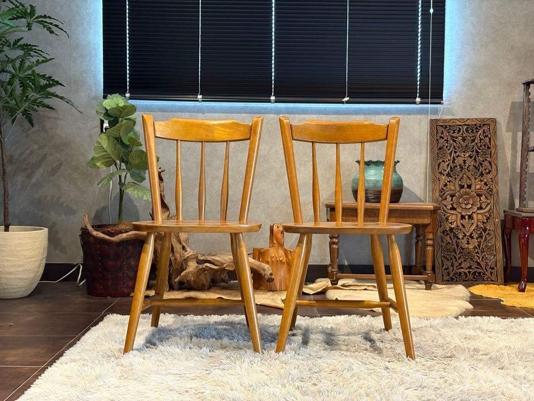 シンプルで美しいシルエットが特徴のウィンザーチェア、スポークチェアのセットです。