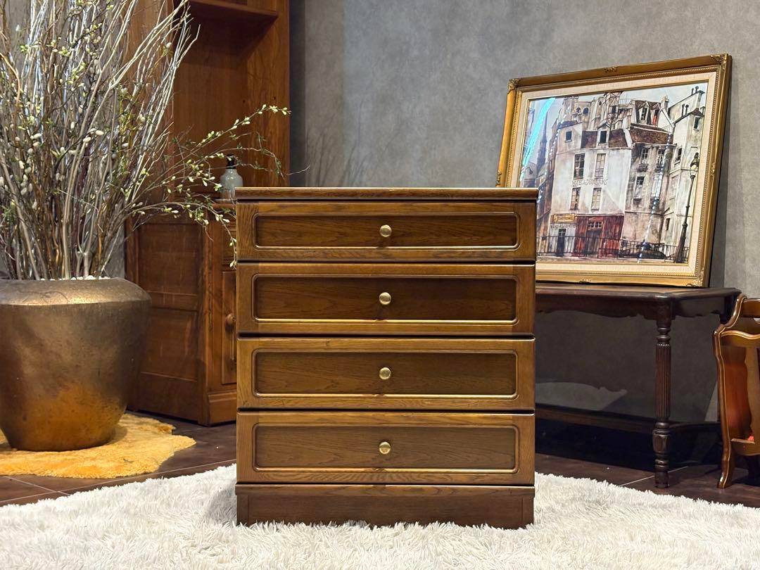 ♯検索タグ アンティーク ヴィンテージ ビンテージ カリモク karimoku チェスト 4段チェスト サイドチェスト 高級 楢材 モダン